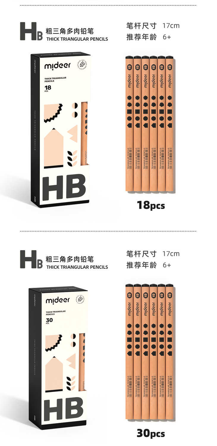 mideer弥鹿铅笔2b学生专用考试正品4b素描笔儿童初学者幼儿园启蒙一年级铅笔涂卡笔文具用品三角杆6b炭笔