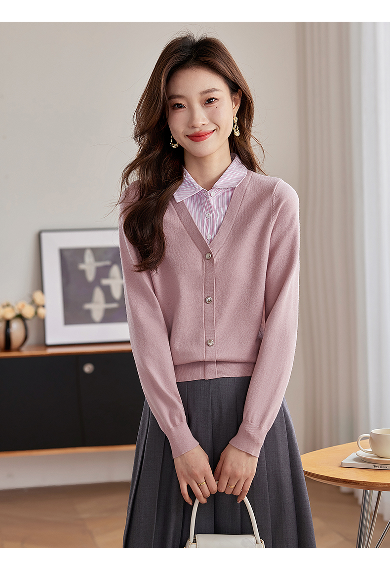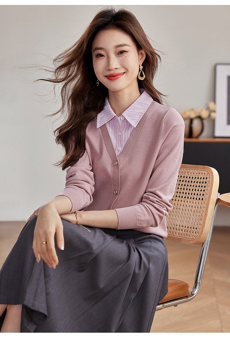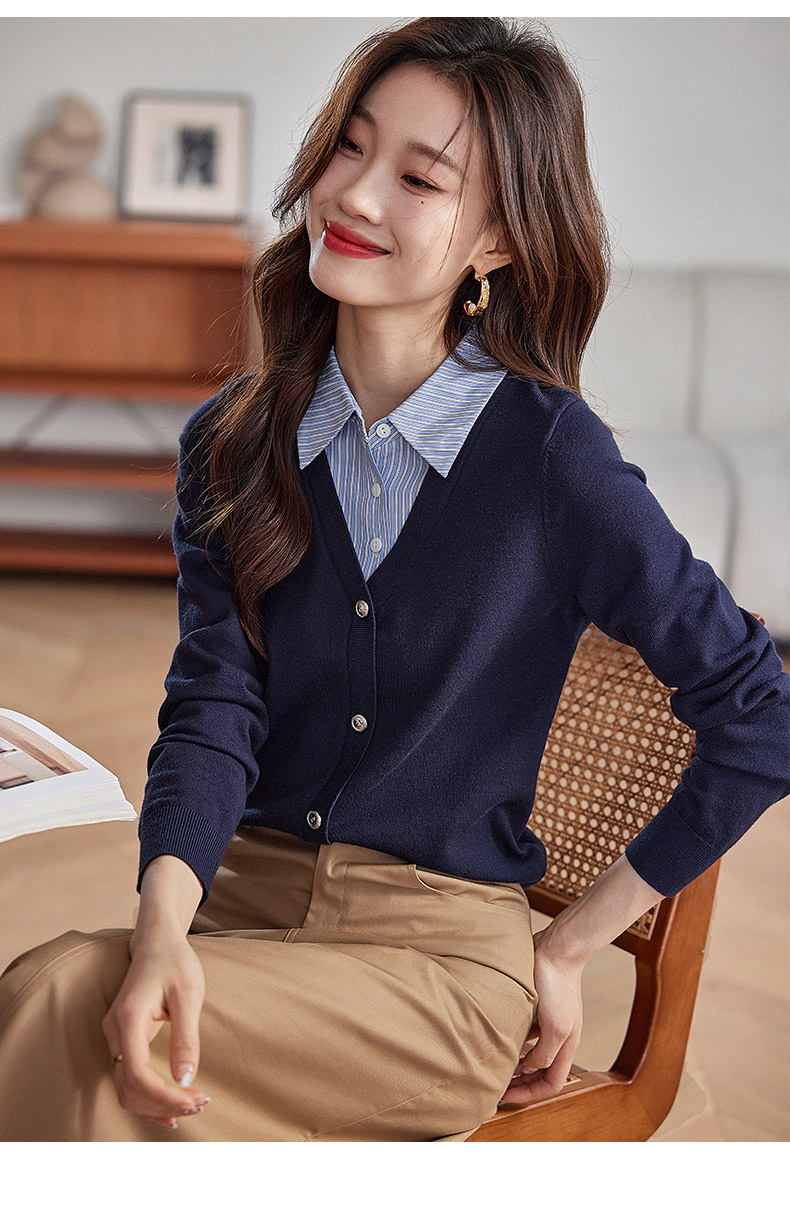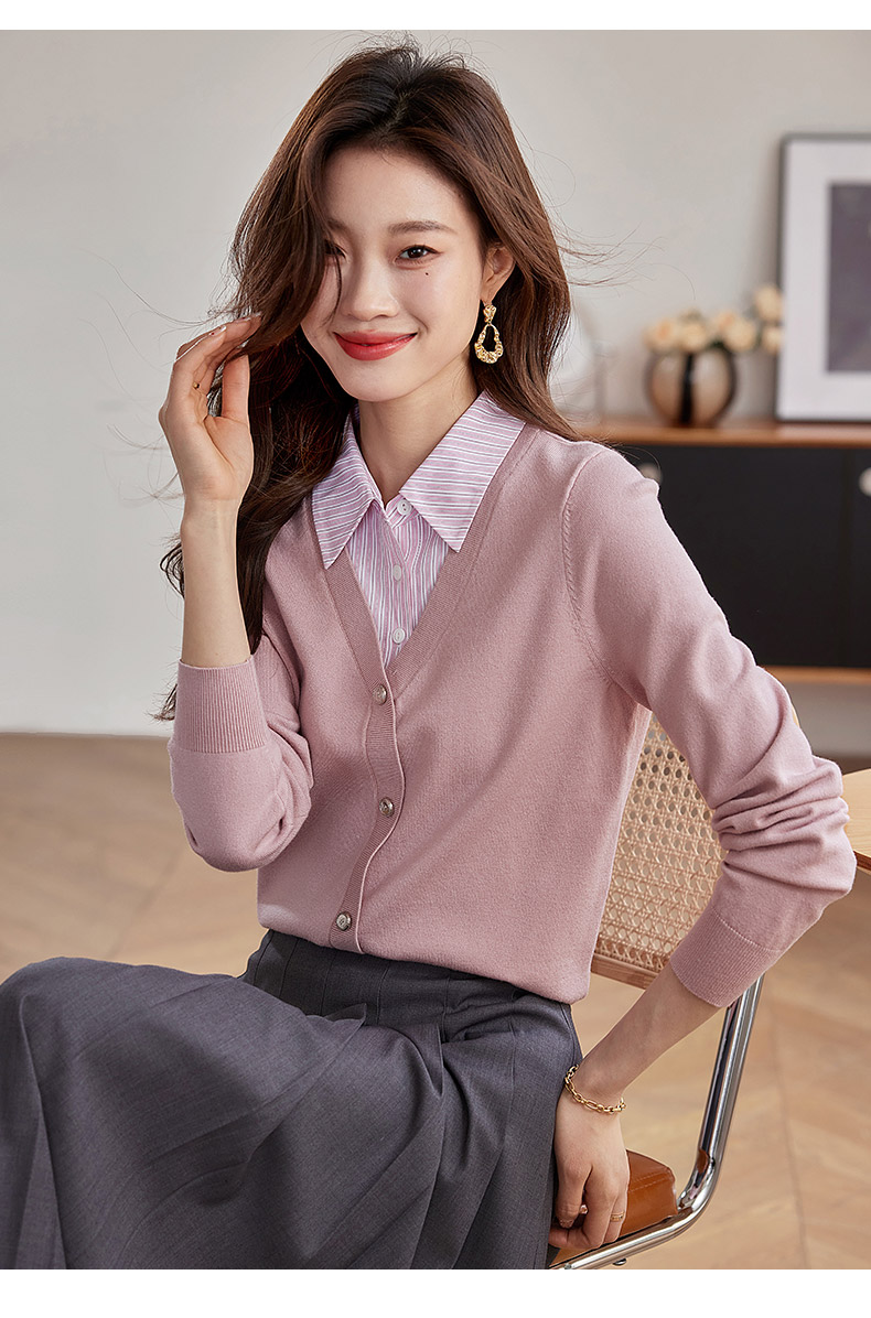 【专属特惠】熙世界假两件衬衫领拼接针织衫女别致学院风打底上衣2025秋季新款