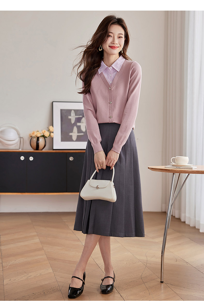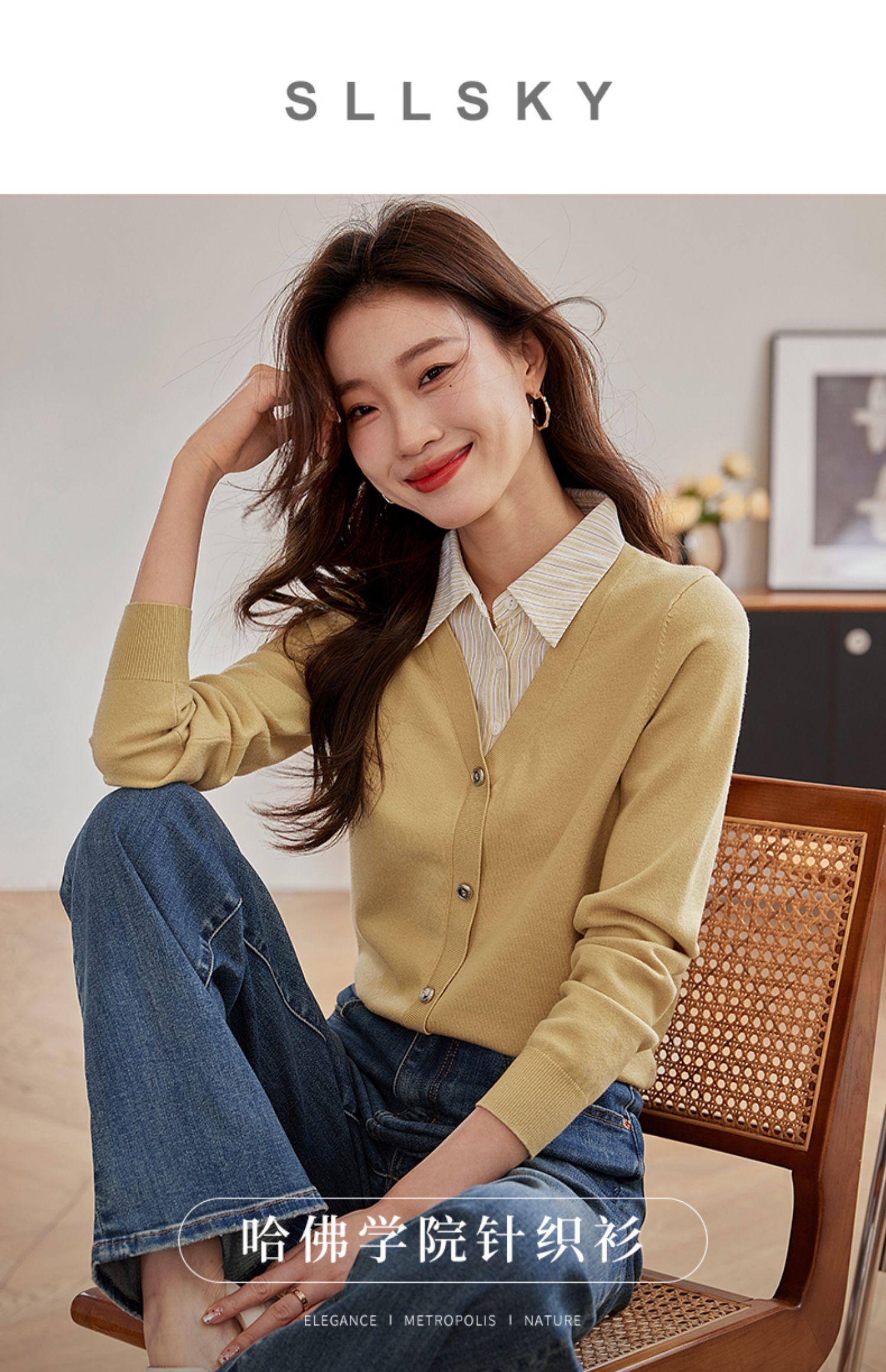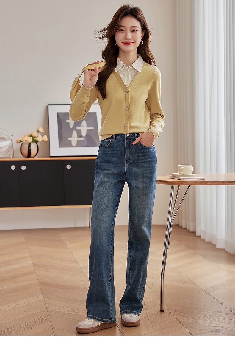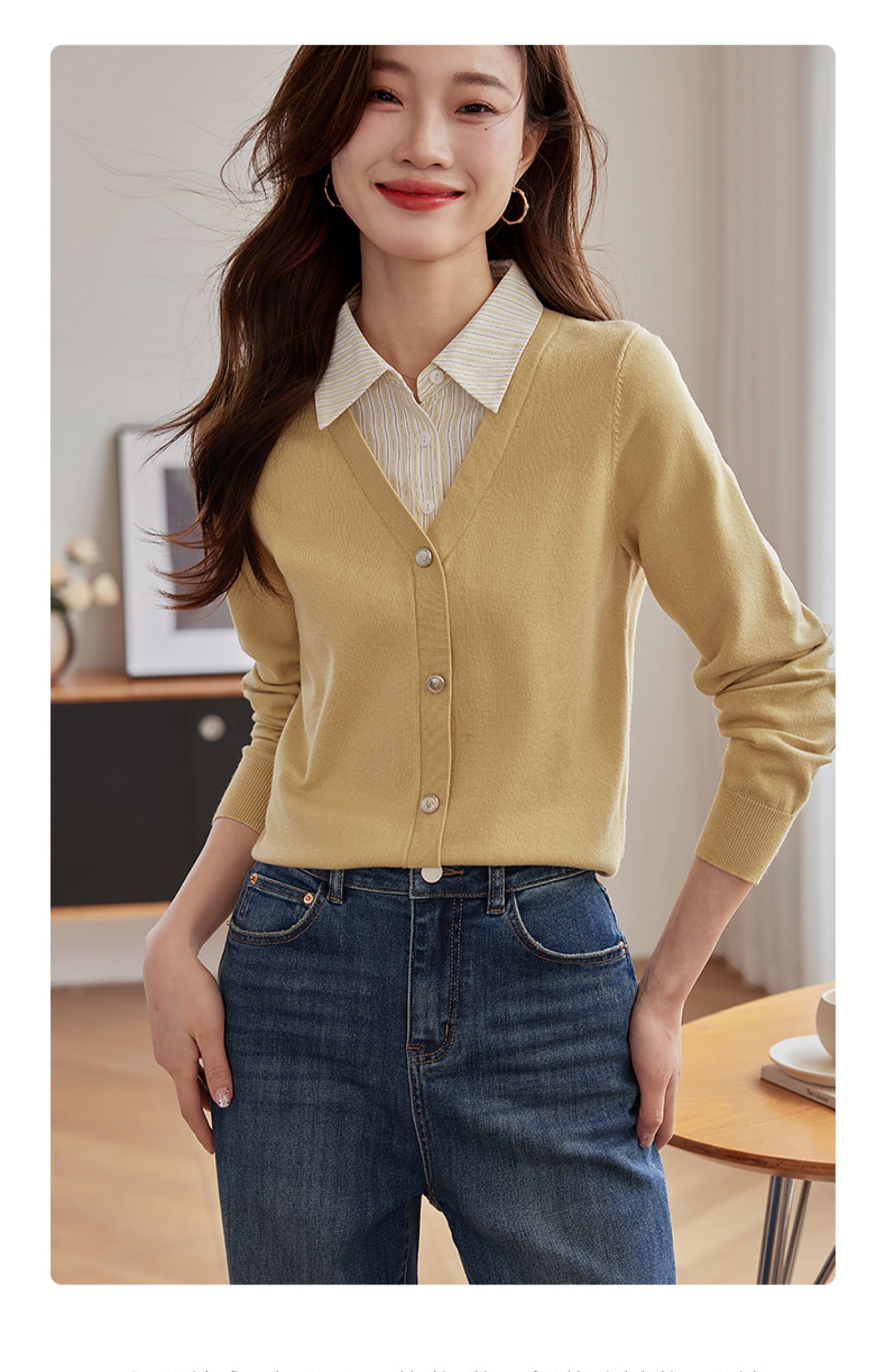 【专属特惠】熙世界假两件衬衫领拼接针织衫女别致学院风打底上衣2025秋季新款