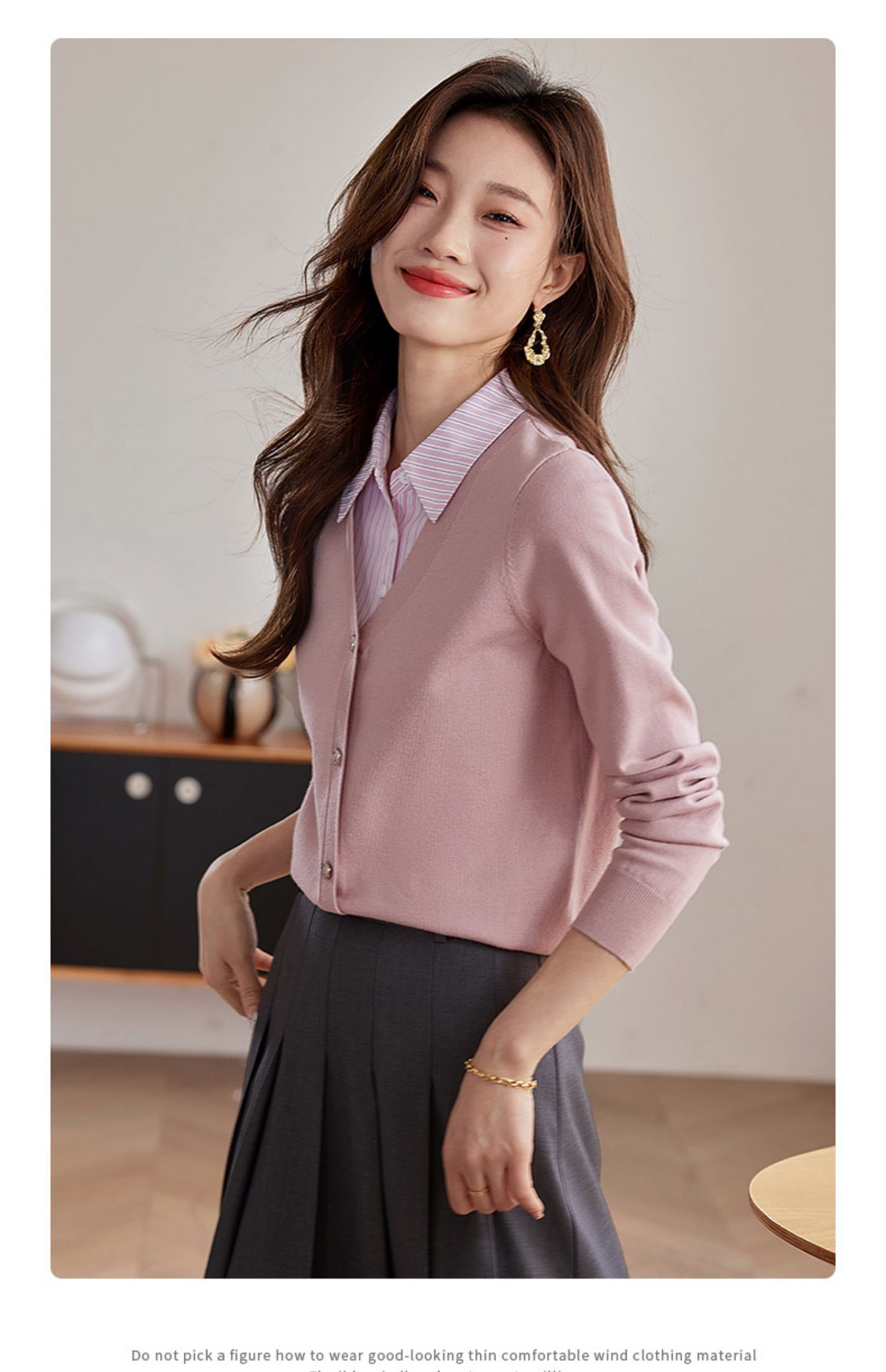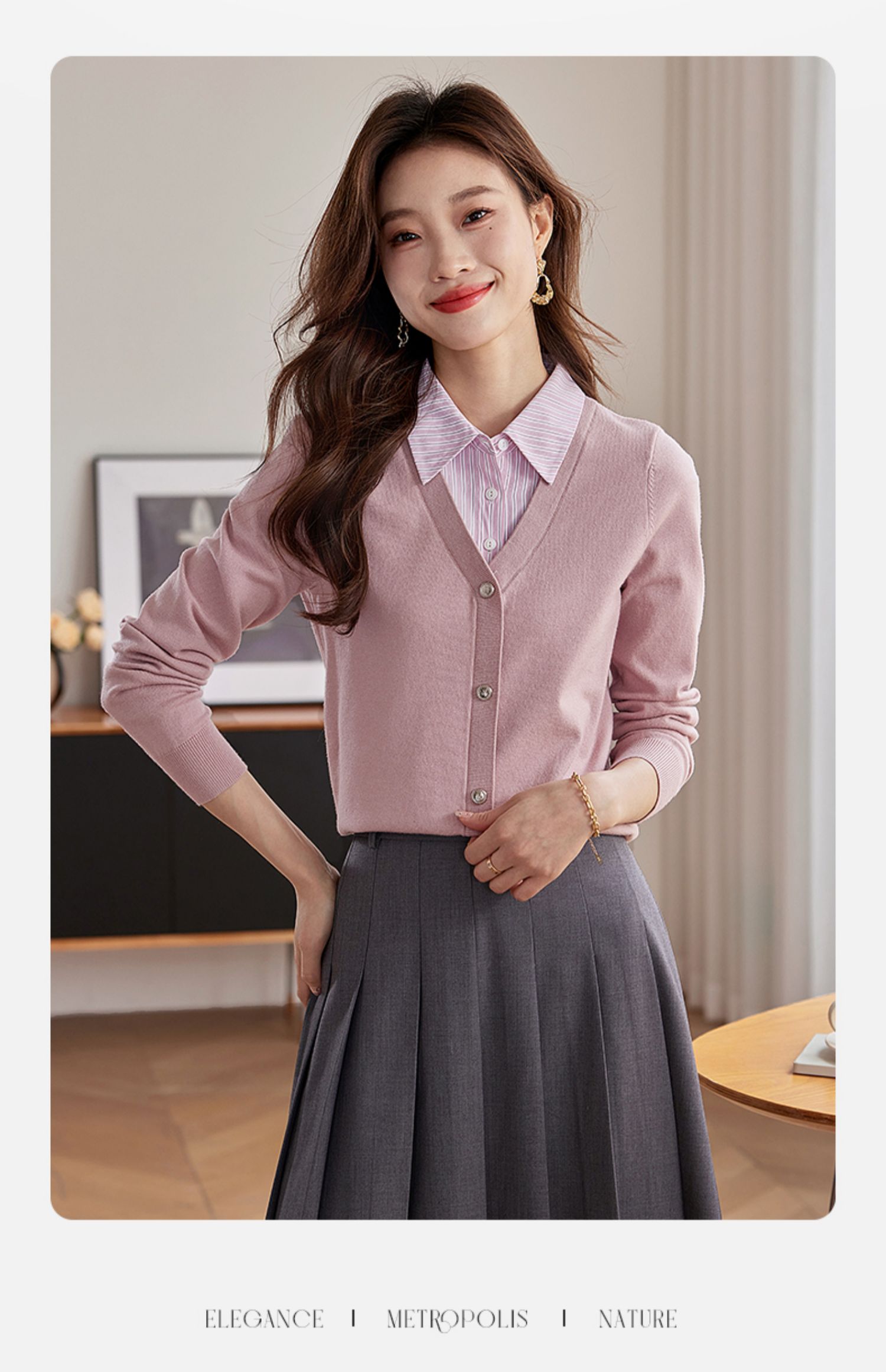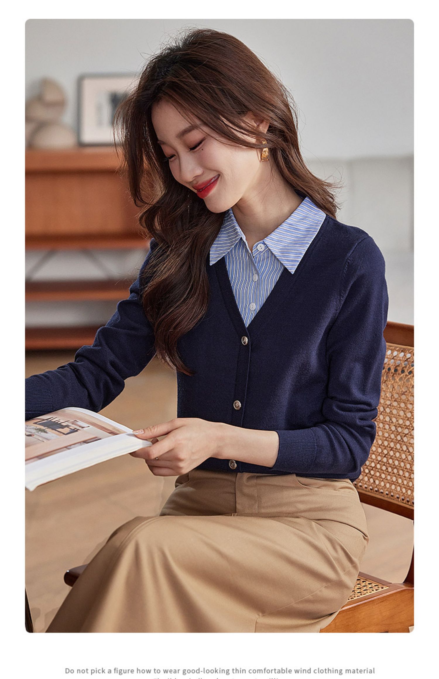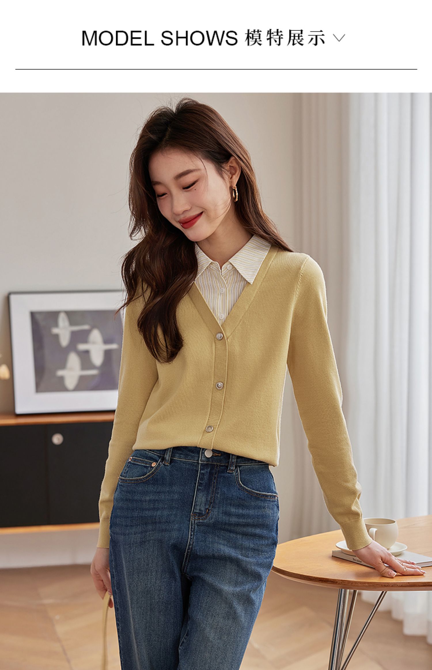 【专属特惠】熙世界假两件衬衫领拼接针织衫女别致学院风打底上衣2025秋季新款