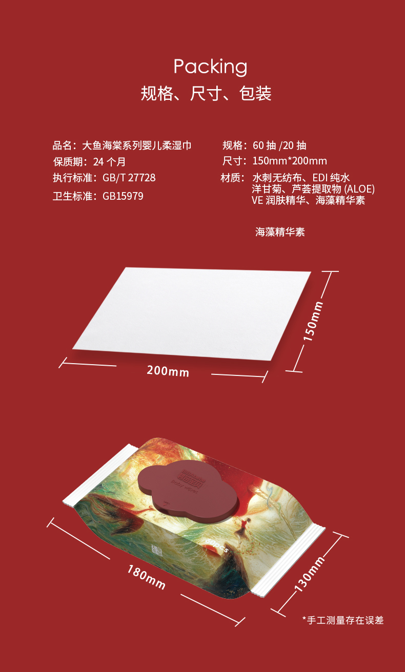 【三巾】碧芭宝贝大鱼海棠加厚手口专用婴儿湿巾20抽*20包/60抽*6包/60抽*12包