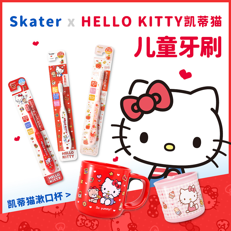 包邮!skater斯凯达Kitty猫Snoopy联名儿童软毛牙刷套装 漱口杯