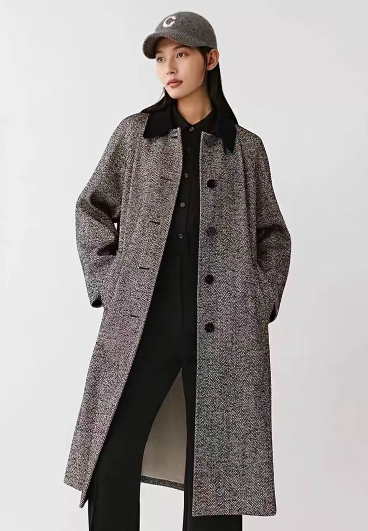小禾人字纹羊毛大衣