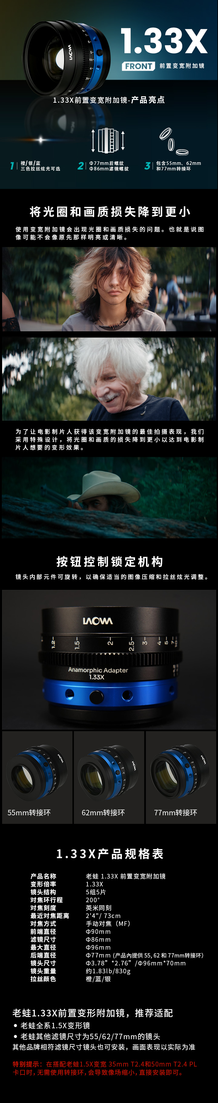 变形镜五件套包括:27mmT2.8、35mmT2.4、50mmT2.4、 65mmT2.4、80mmT2.4