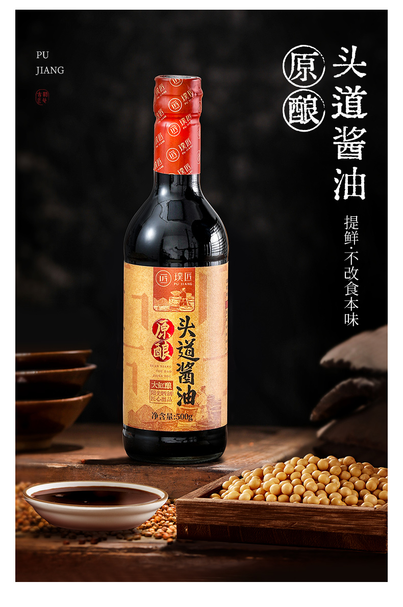璞匠原酿头道酱油酿造特级烹饪调味品家用调料汁凉拌500ml/瓶