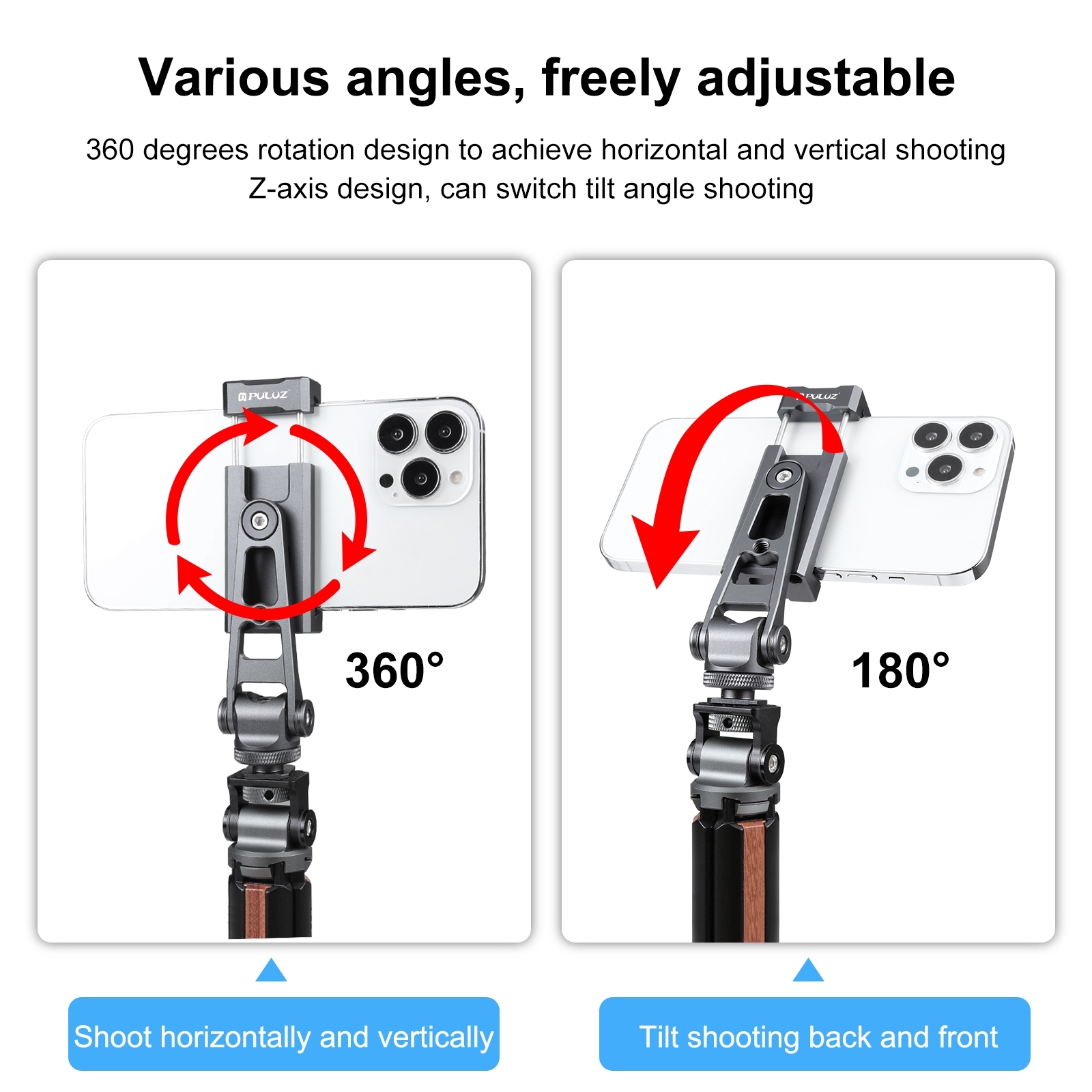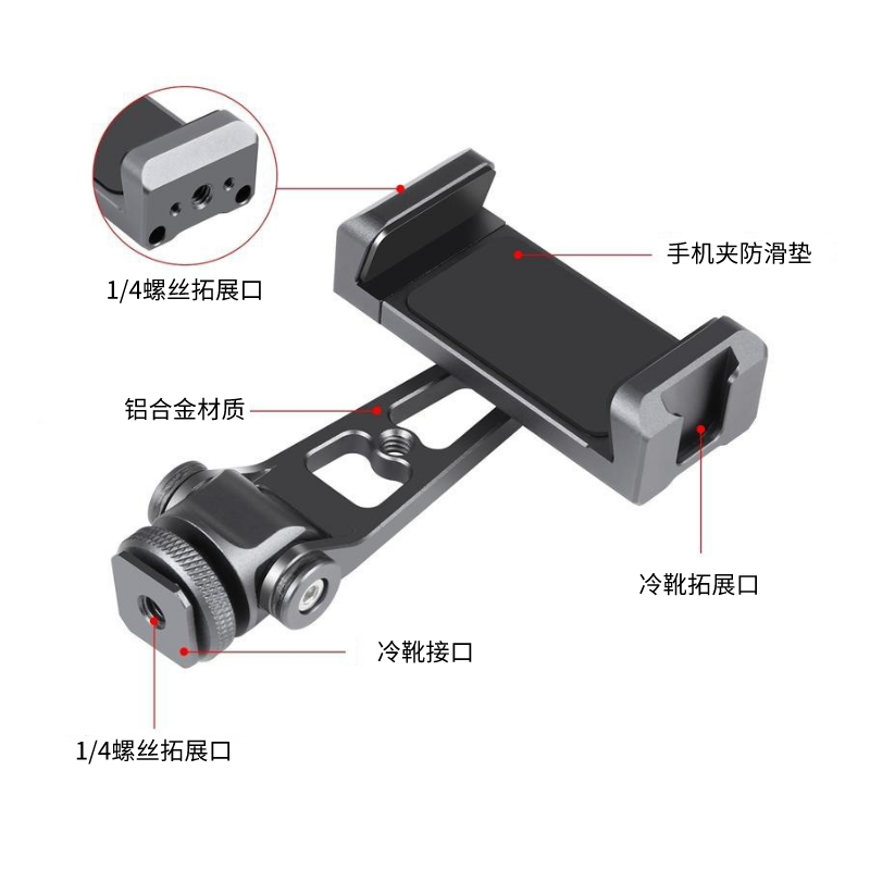 狼族优选丨Z轴360旋转冷靴手机夹 铝合金属手机夹-PU3207B