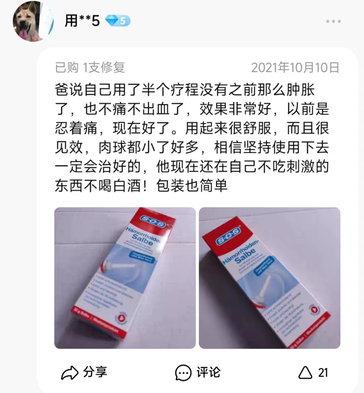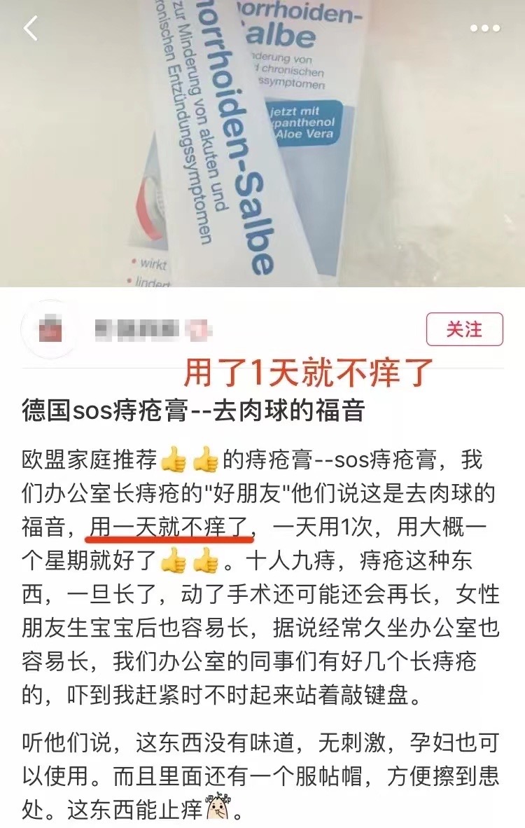 现在我们的救星来了——【德国SOS痔疮膏】