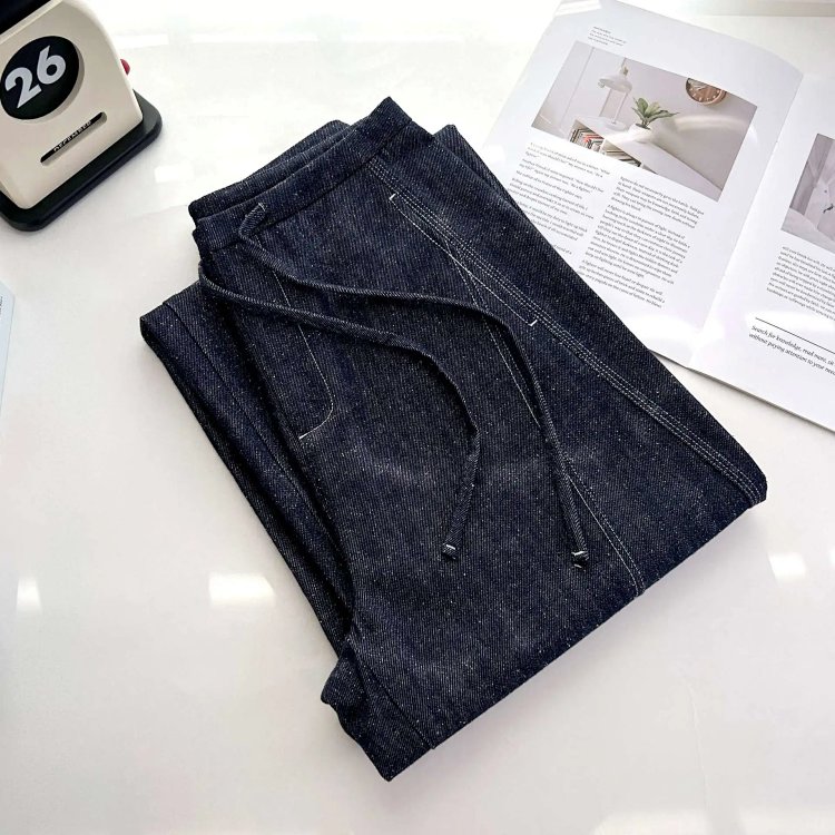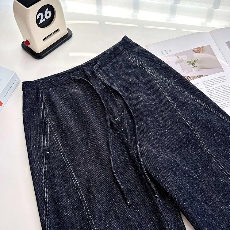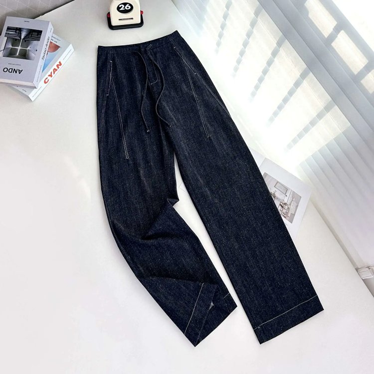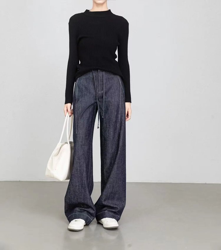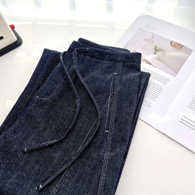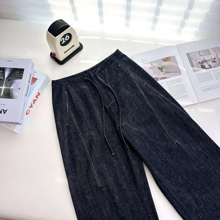 2025 秋冬新款!高个子加长拖地点点纱牛仔裤 抽绳小众阔腿型 100% 棉 显瘦显腿长