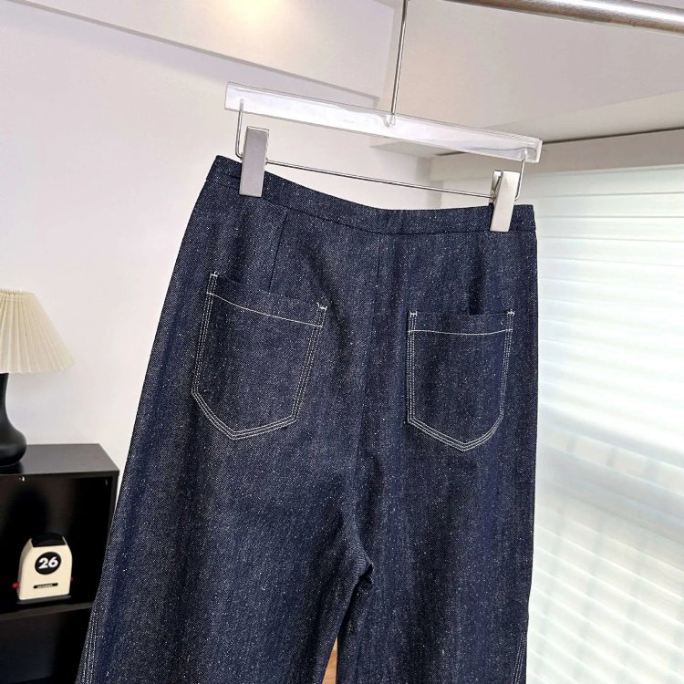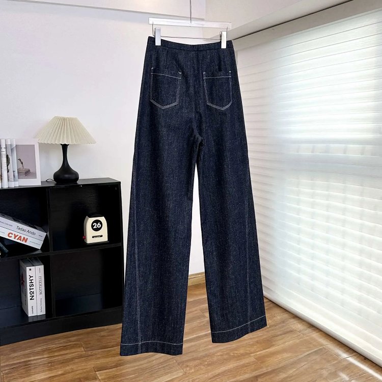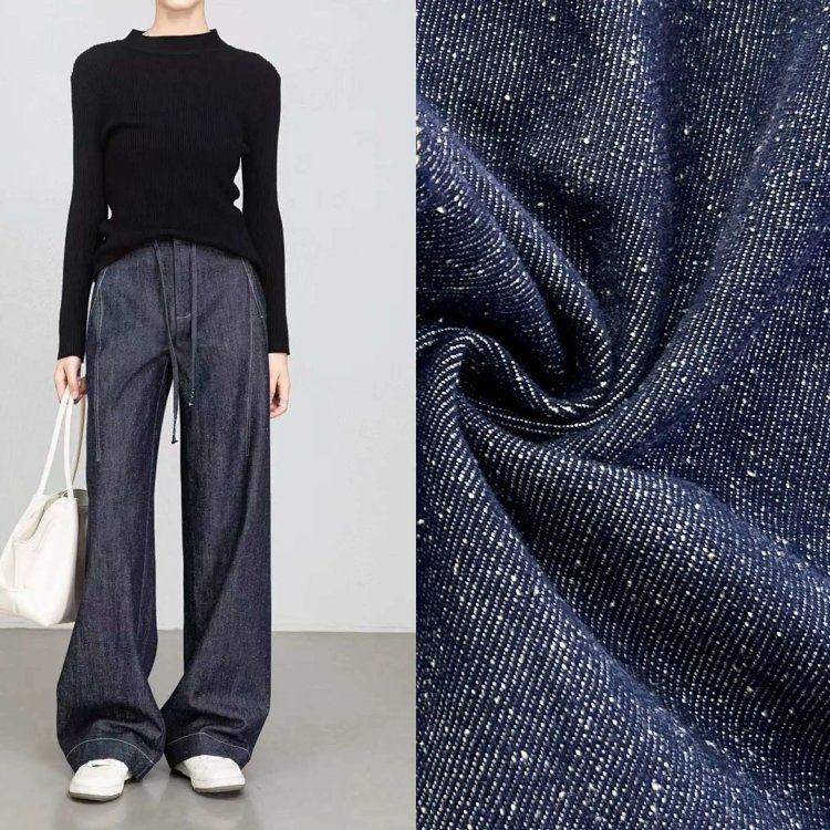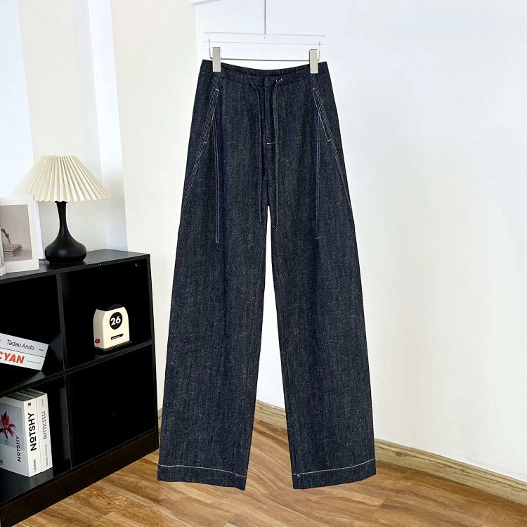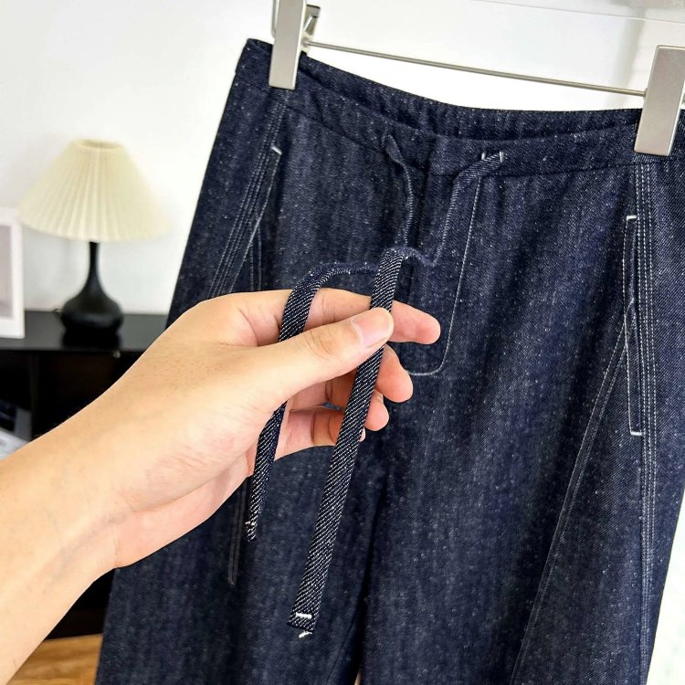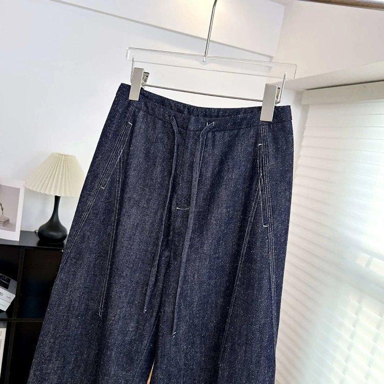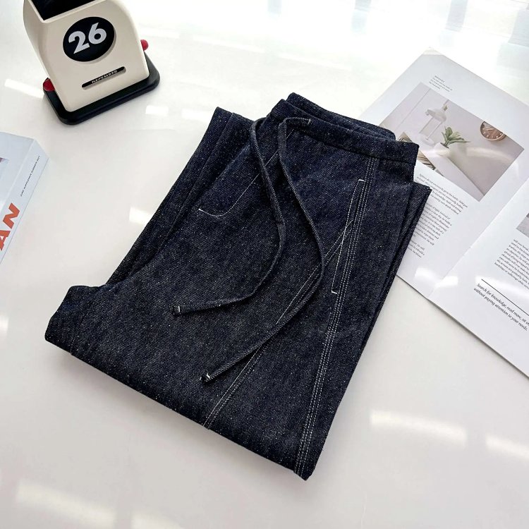 2025 秋冬新款!高个子加长拖地点点纱牛仔裤 抽绳小众阔腿型 100% 棉 显瘦显腿长