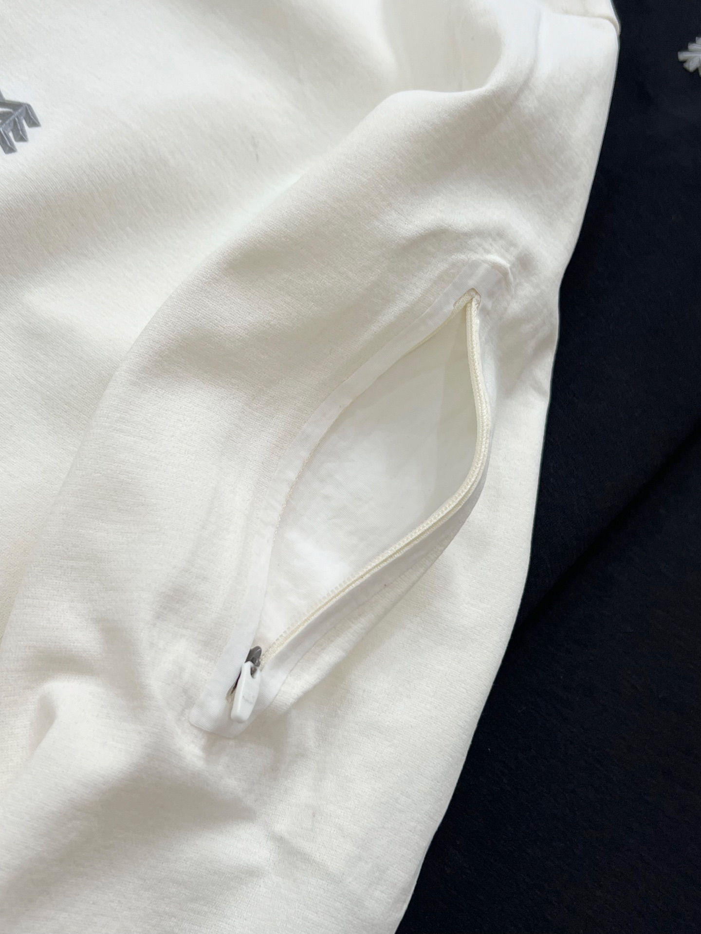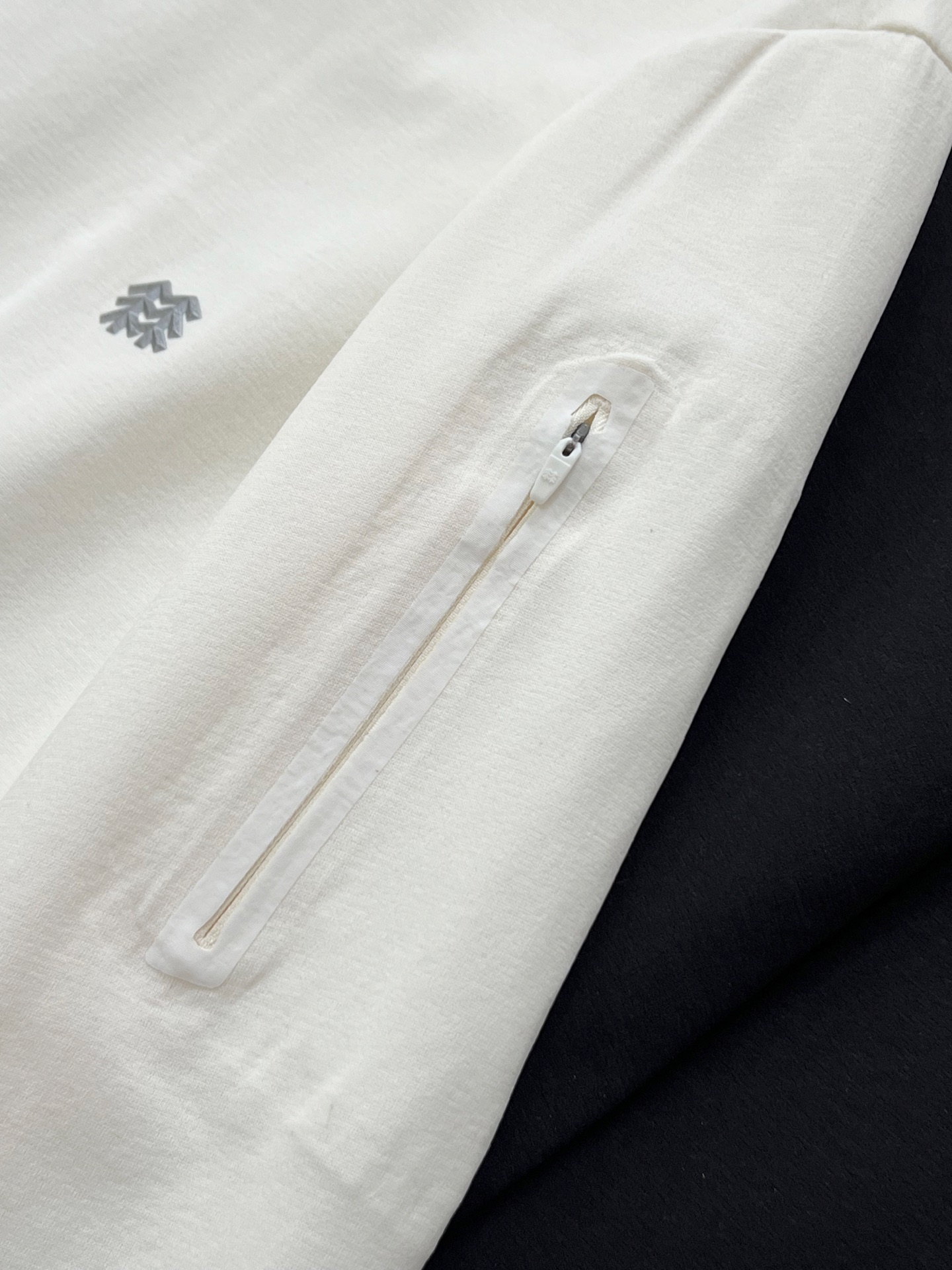袖侧立体真口袋、下摆加固套结、后领平整压胶…