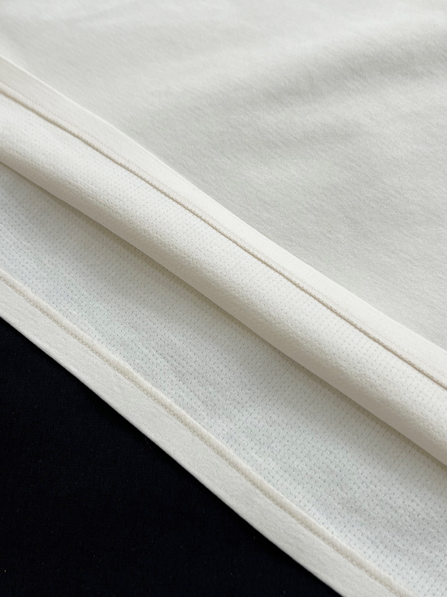 领口、袖口、下摆全部采用“先压胶再车线”双重工艺,耐久度远超普通T恤