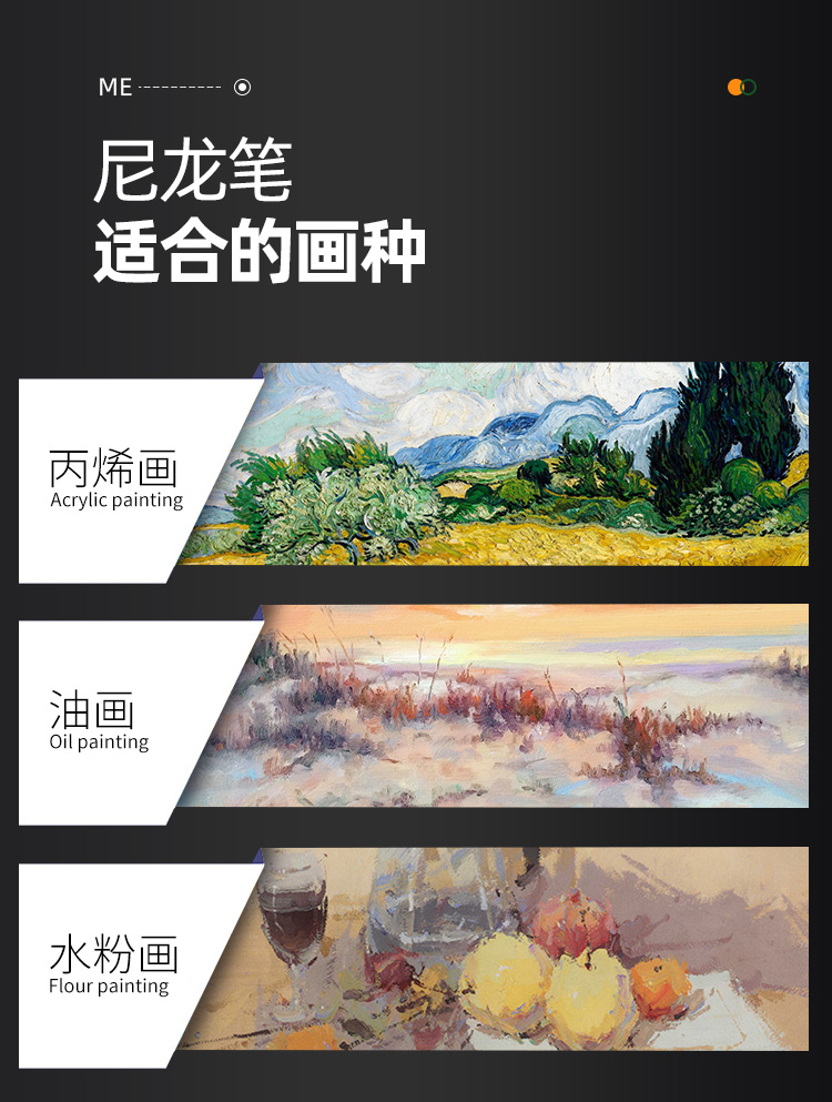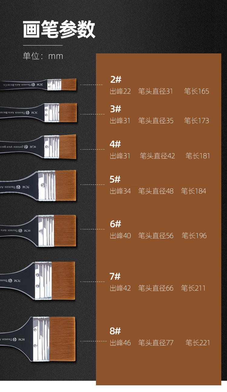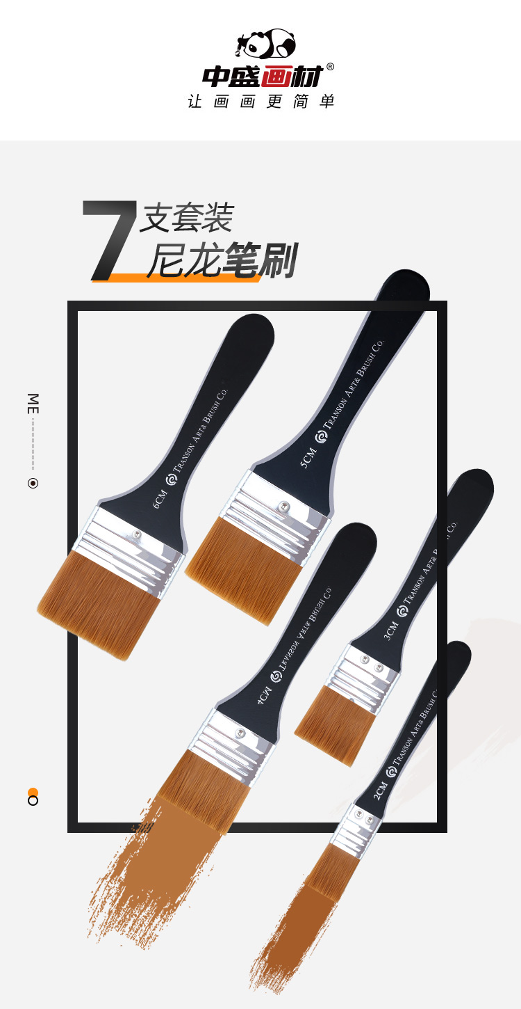 中盛画材 G1754尼龙画笔刷水彩笔水粉油画丙烯画笔板刷墙绘笔刷子