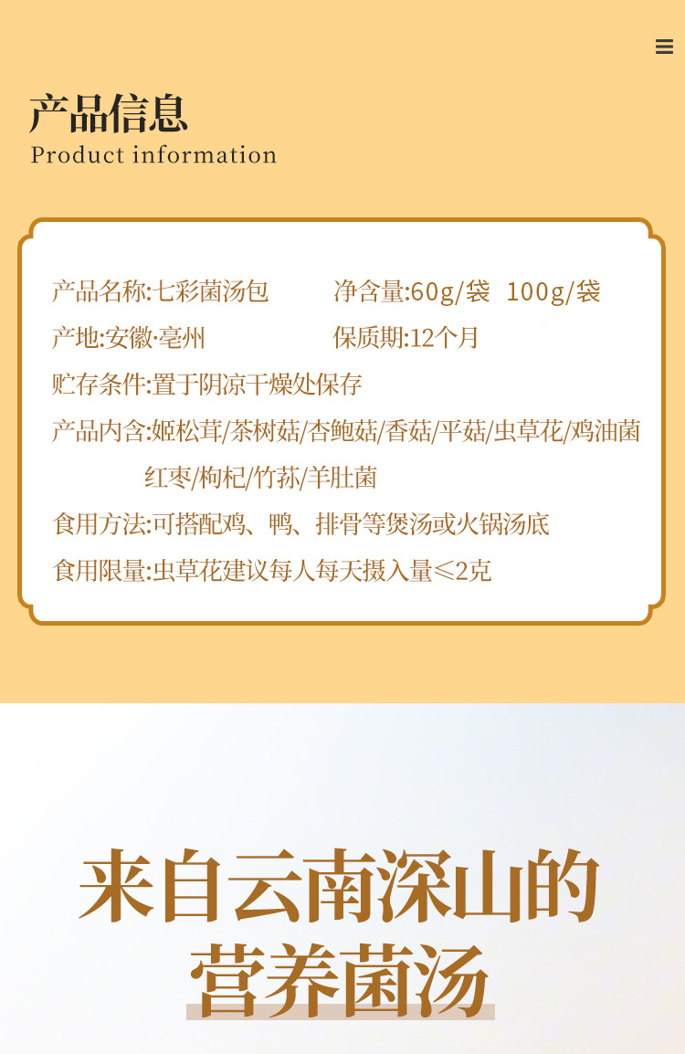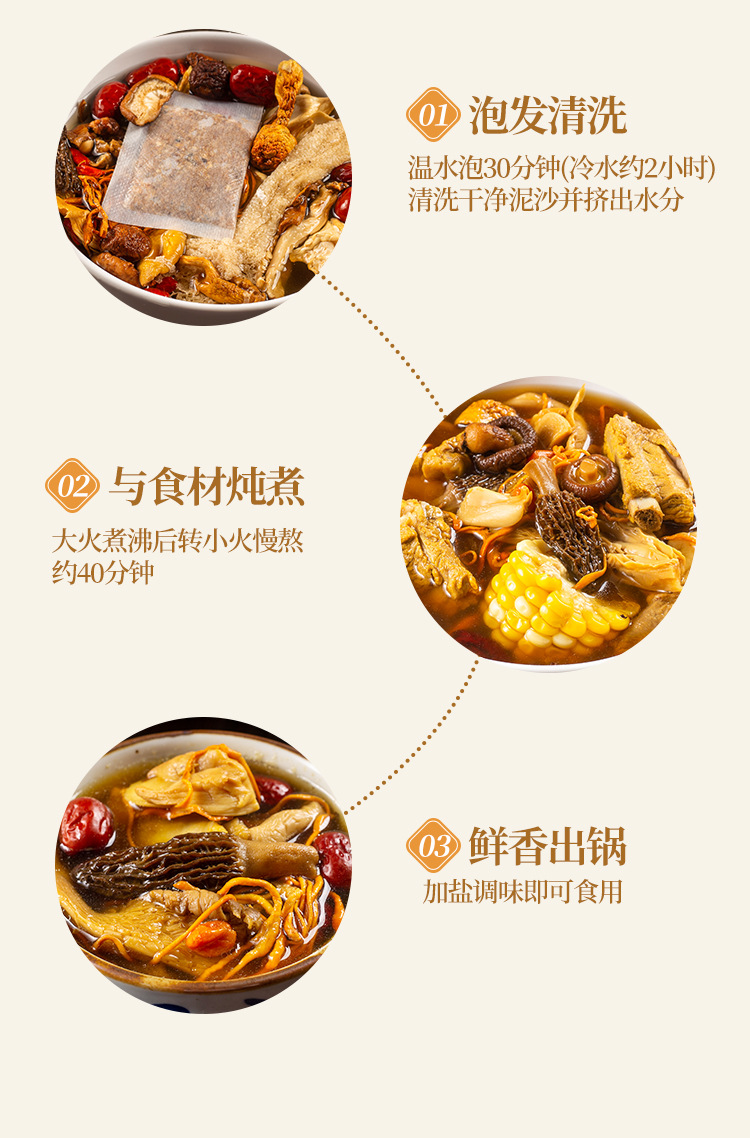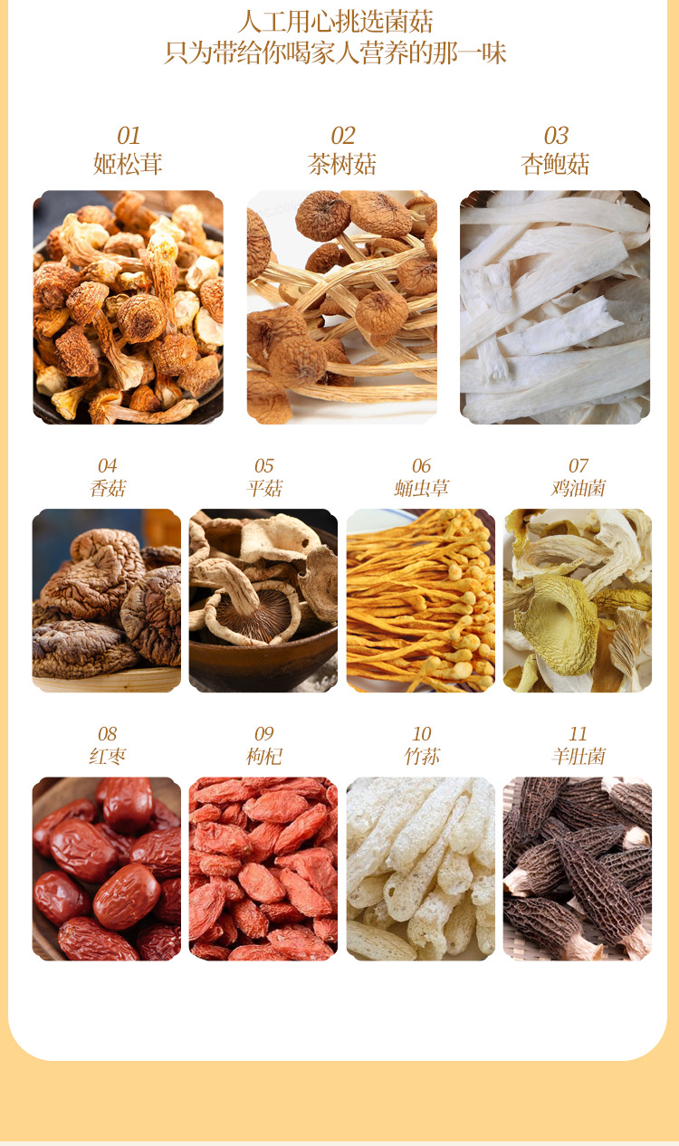 【4包】云南松茸菌、羊肚菌汤包、11种配料、炖鸡煲汤火锅食材、新鲜美味