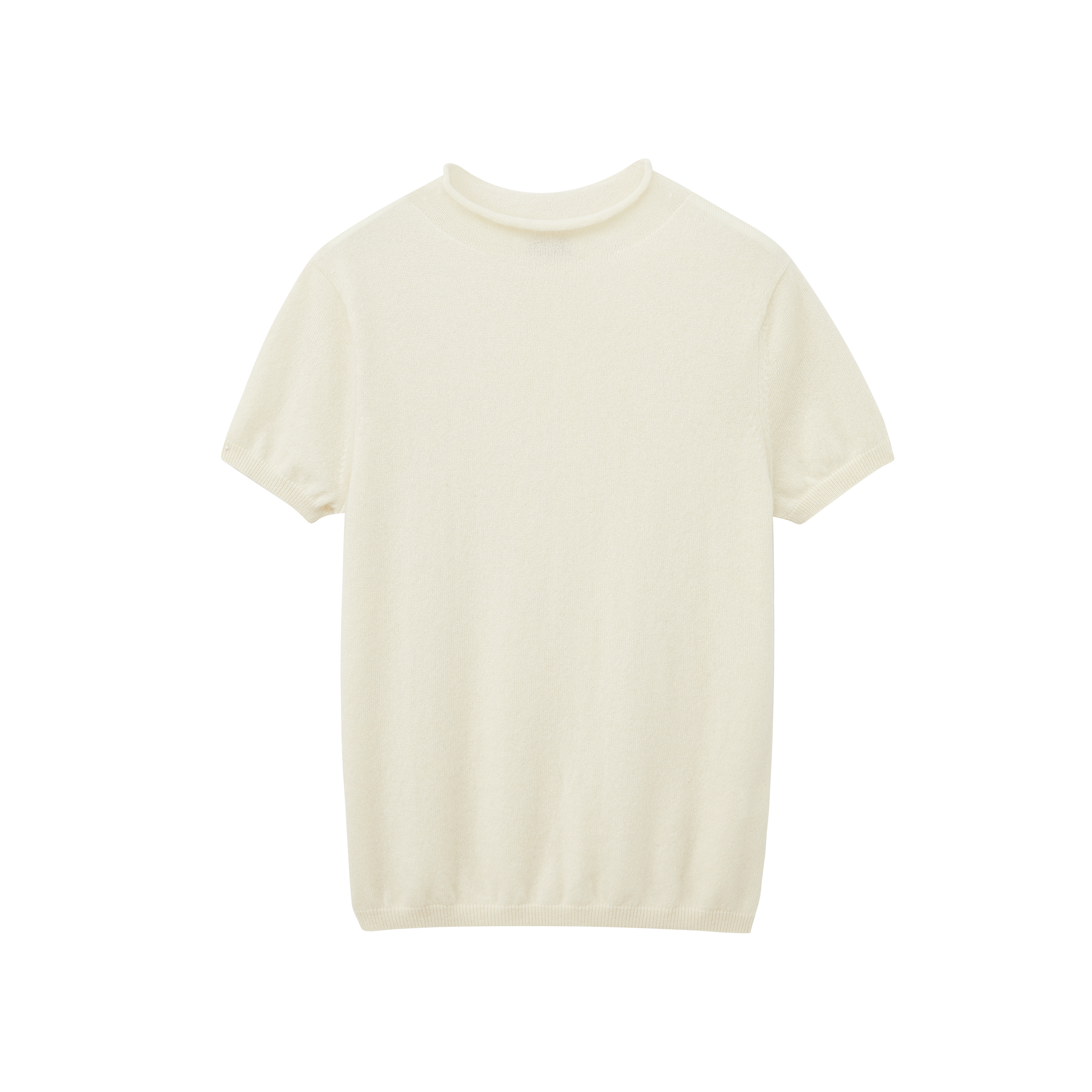 纯羊绒材质羊绒自然卷边领短袖套衫