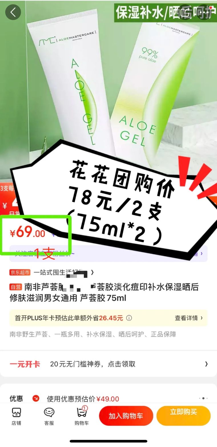 想着花粉宝宝们居家肯定少不了这款好物不贵的芦荟胶,官网价折后56元/支,我们花花品质生活特意帮大家争取到了花粉福利价:78元/2支。