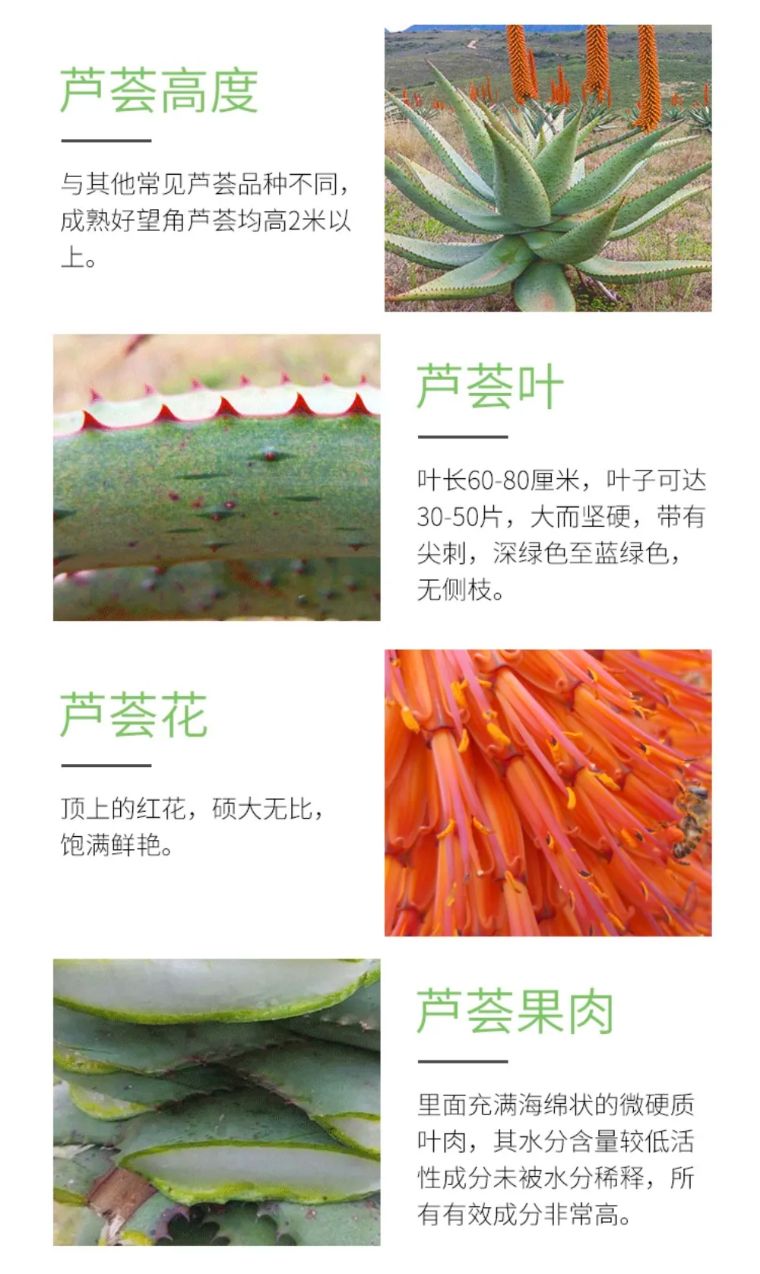 好望角芦荟又叫开普芦荟,它的氨JI酸含量超36&,富含的“芦荟绿素”(护肤核心成分),其活x成分更是库拉索芦荟的20bei之多,还含有多种维生素,多糖,矿物质。不管是去除yan症,舒缓,愈he都是金字ta般的存在,莞全不是人工养殖能够比拟的。