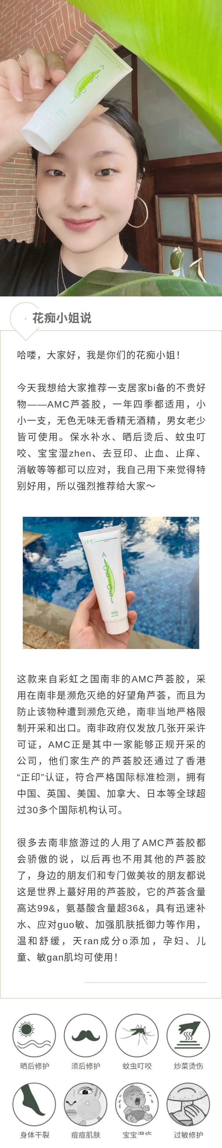 AMC/荟研芦荟的强大在于不管是长dou、敏gan,还是夏天晒红、冬天受冻,或者起轸子、蚊虫叮咬、磕碰破口等,它都能及时应对这些突发的皮F问题,炒鸡wan能!