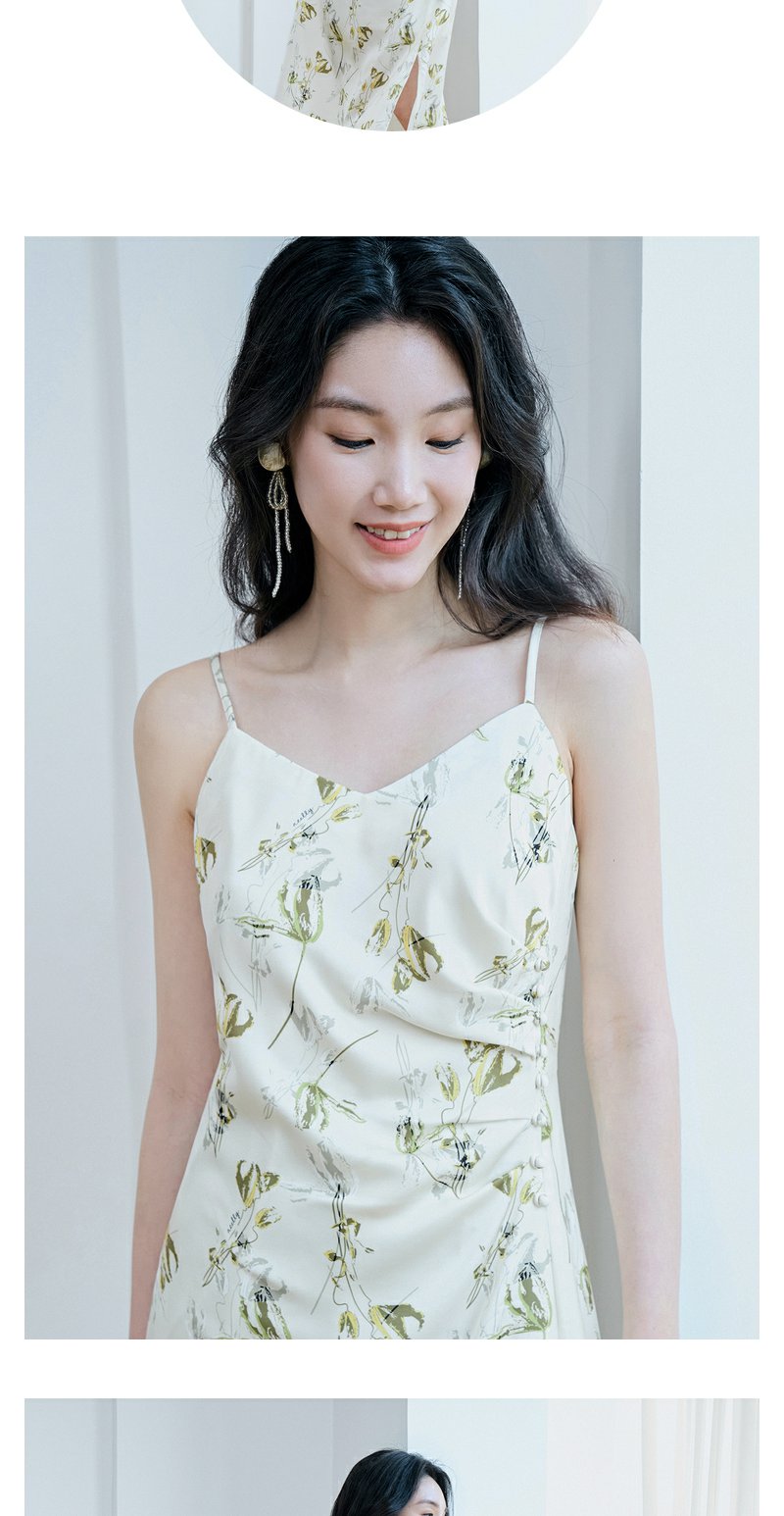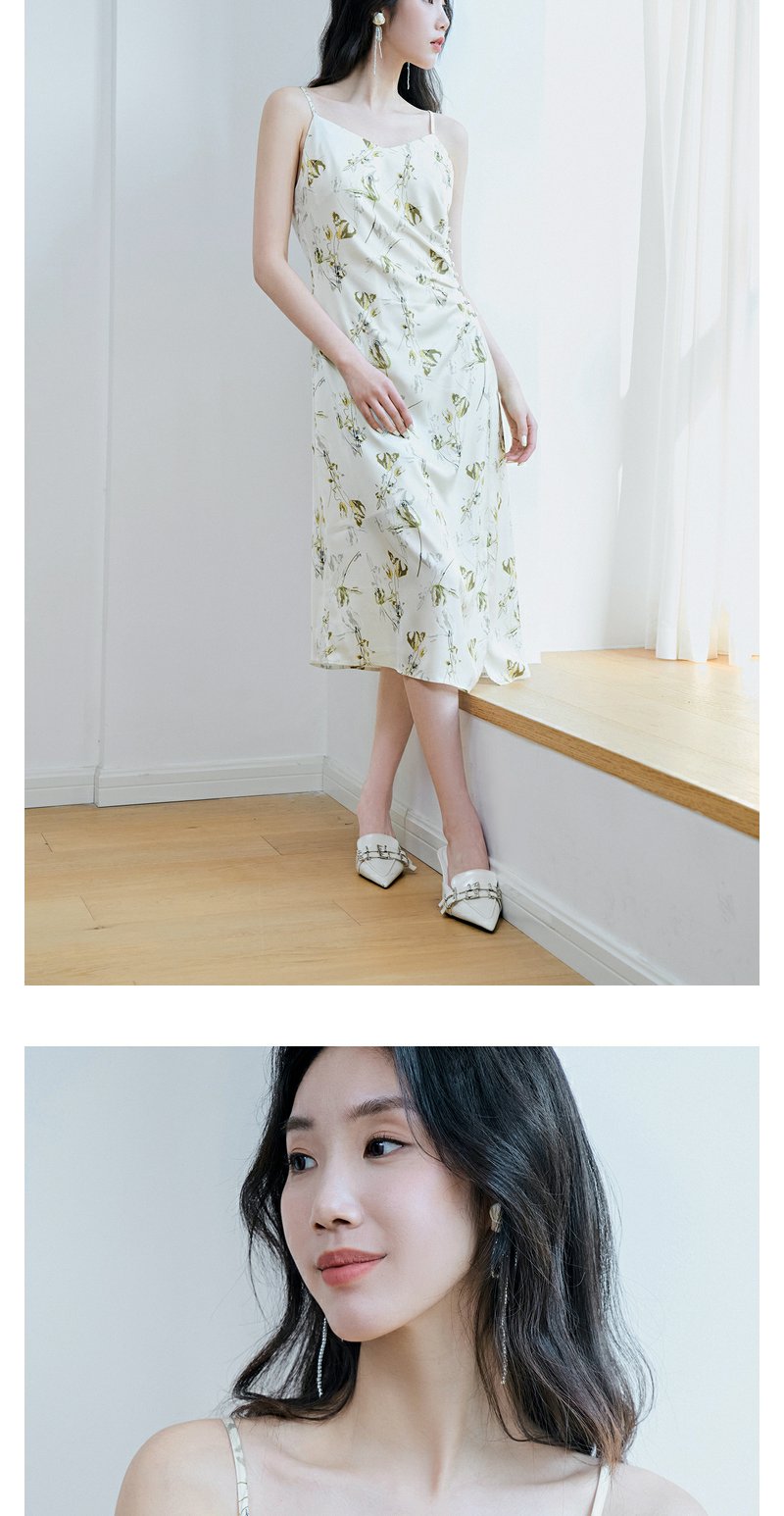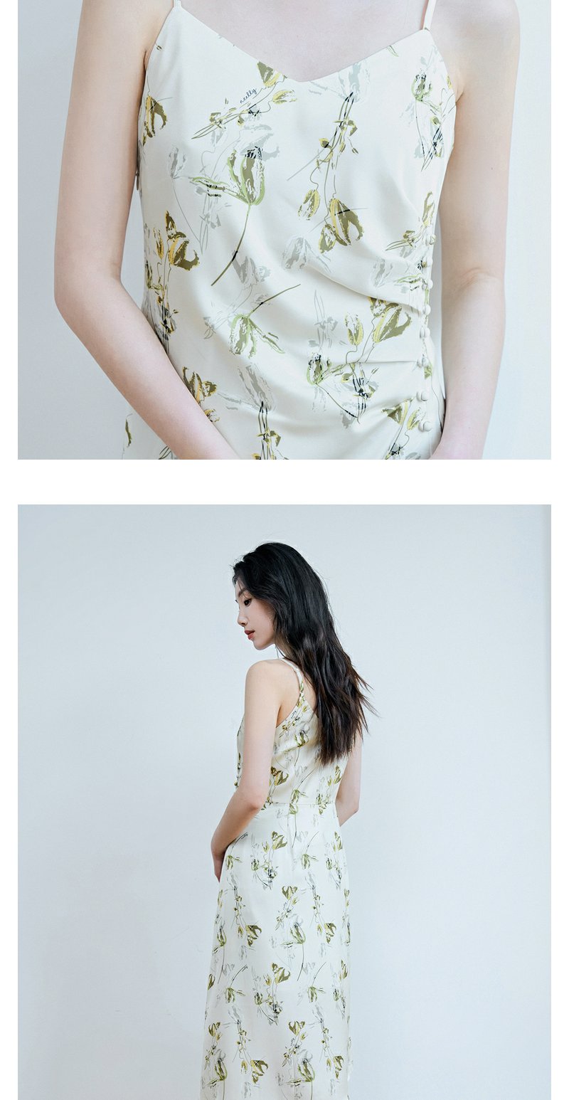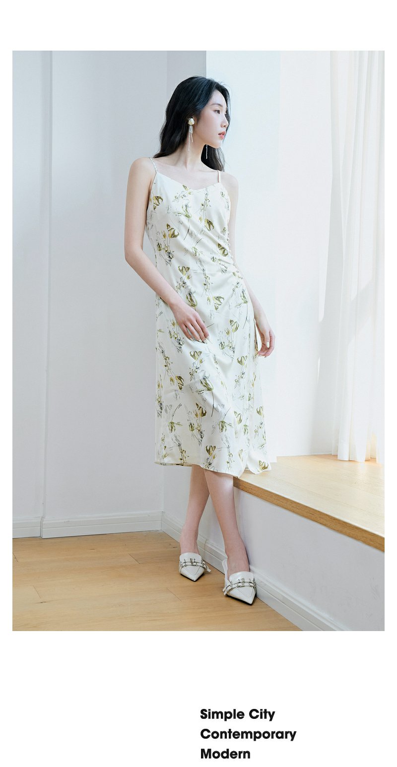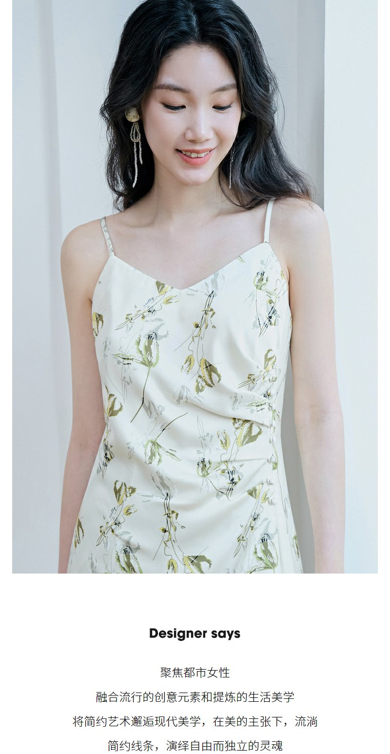 NEELLY纳俪商场同款高级感度假风开叉吊带连衣裙女法式优雅中长裙N23074Y03342