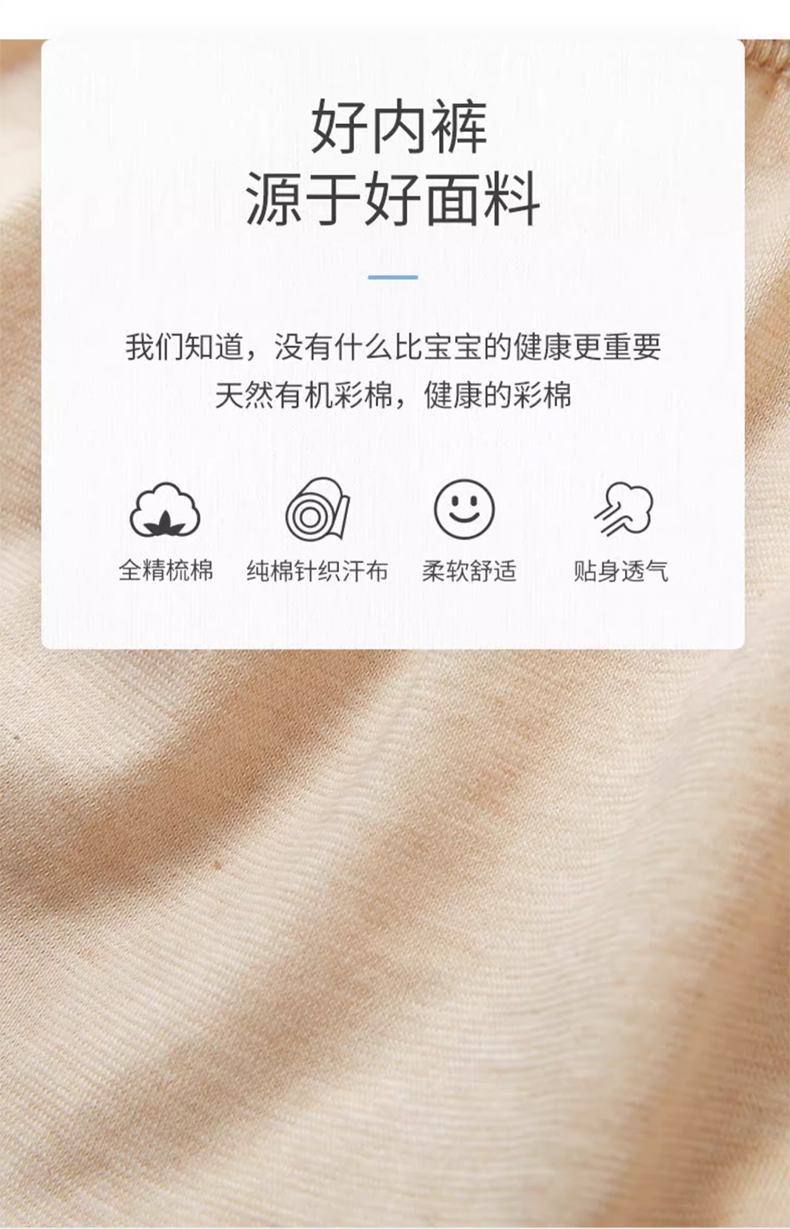 有机彩棉儿童内裤 男女童平角内裤 大小童宝宝三角裤 纯棉亲肤透气 素道敦煌天然有机彩棉基地 舒适安全健康 [漳州仓]