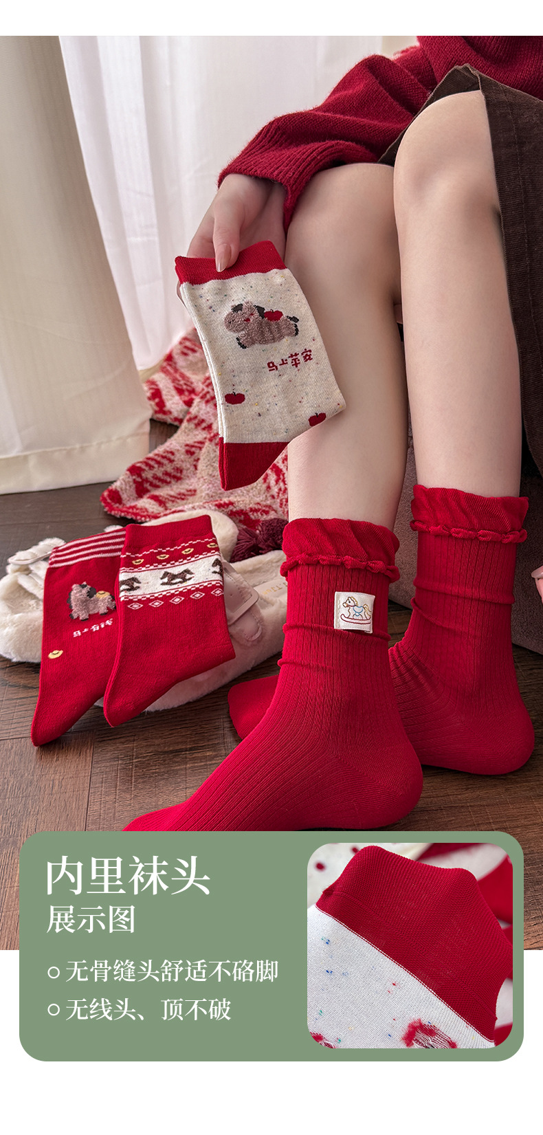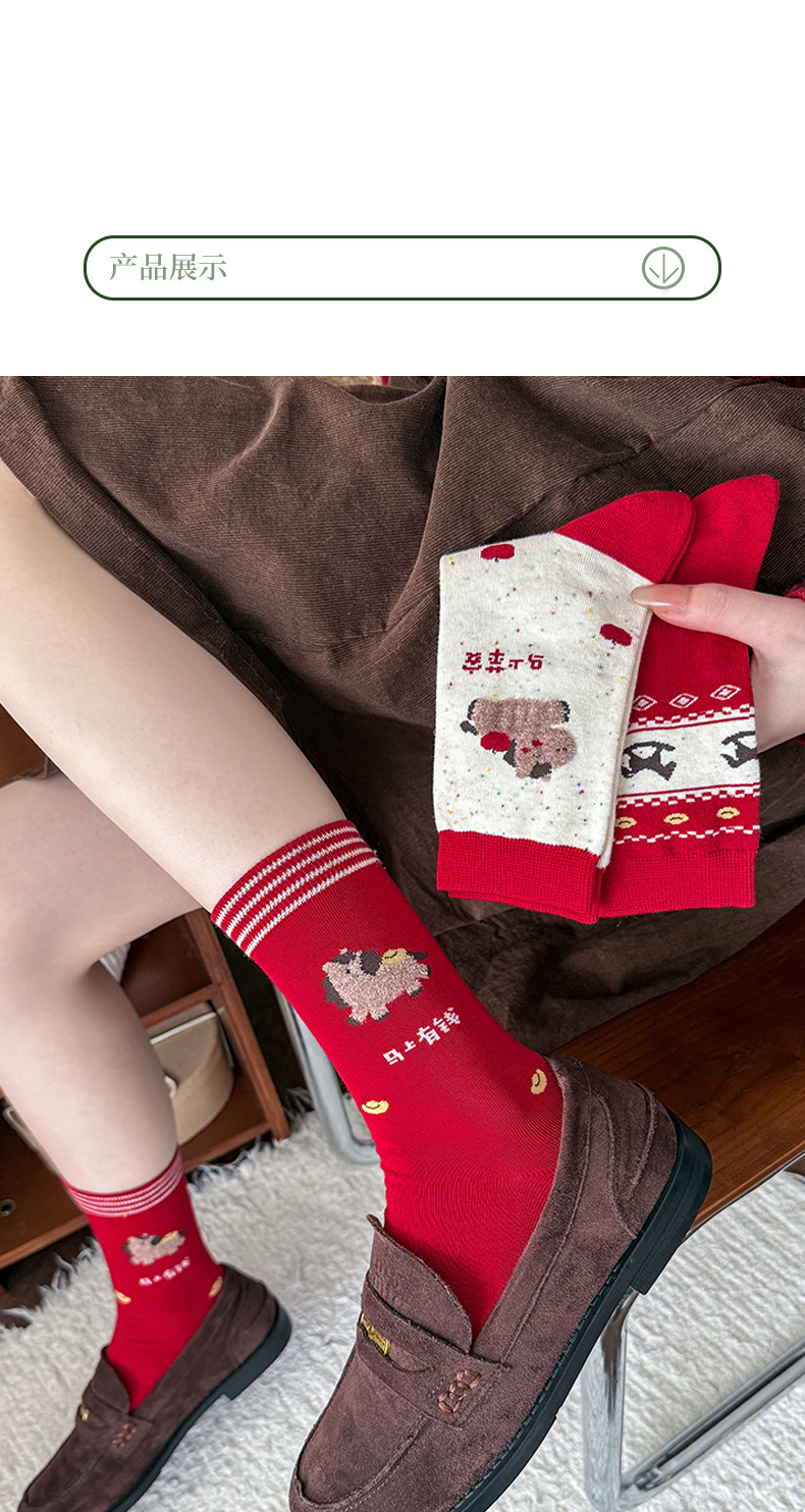 雀说本命年红袜子女中筒袜秋冬季款棉袜ins潮马年新年礼物可爱长筒袜ALW5061