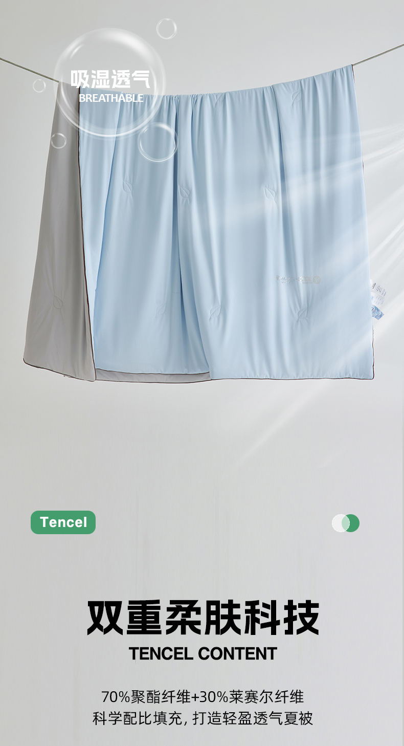 【凉感值高达0.36】A类裸睡级凉感兰精莱赛尔天丝夏被 丝滑凉爽夏凉被