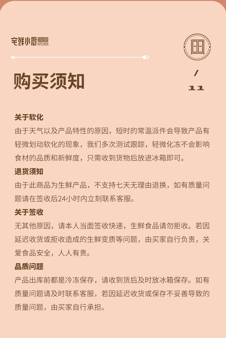 售后正常标准(注意事项):生鲜食品,发货不支持拦截,不支持7天无理由退换!