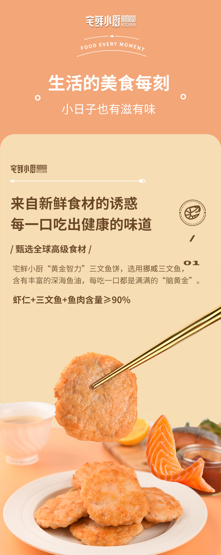 【买2送1】三文鱼饼 三文鱼含量≥30% 美味营养 添加DHA鱼油粉 双重DHA 孩子孕妇老人都适合吃(40g*2块)/袋