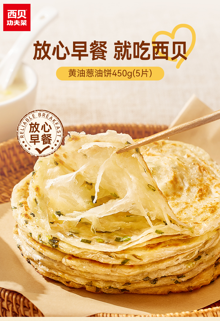 西贝黄油手抓饼800g/袋/西贝黄油葱油饼450g/袋(5片装)早餐方便煎饼手抓饼/葱花饼【社群】