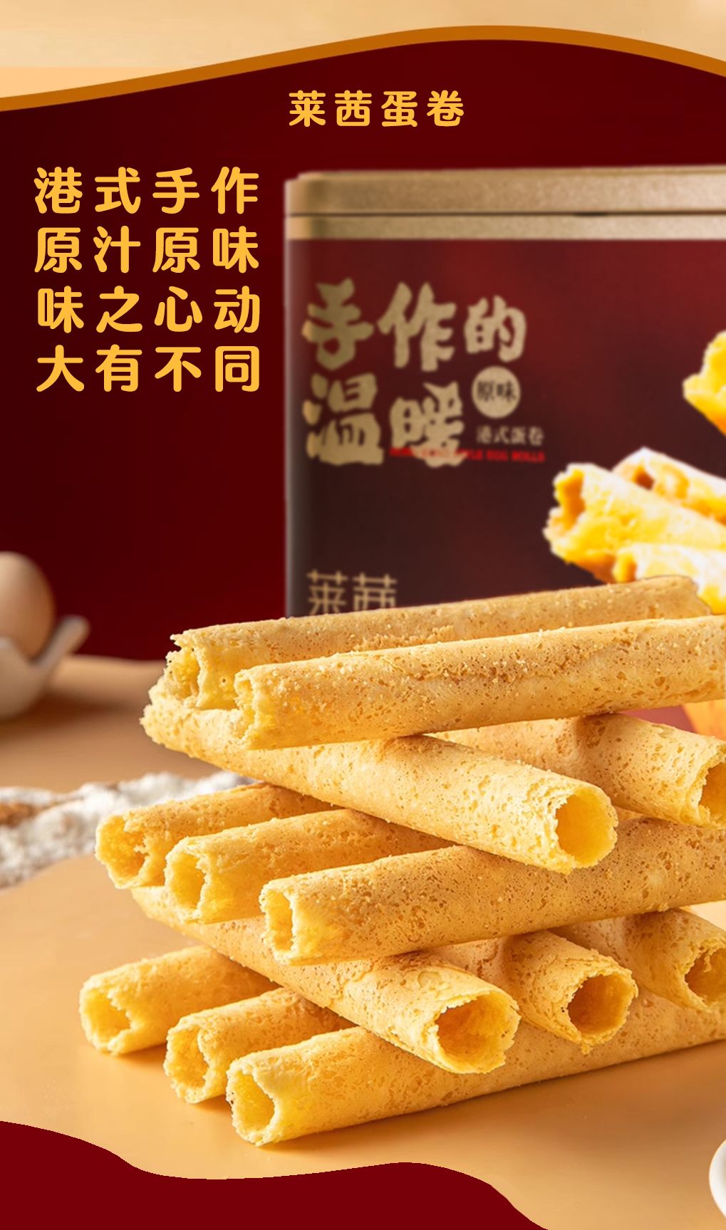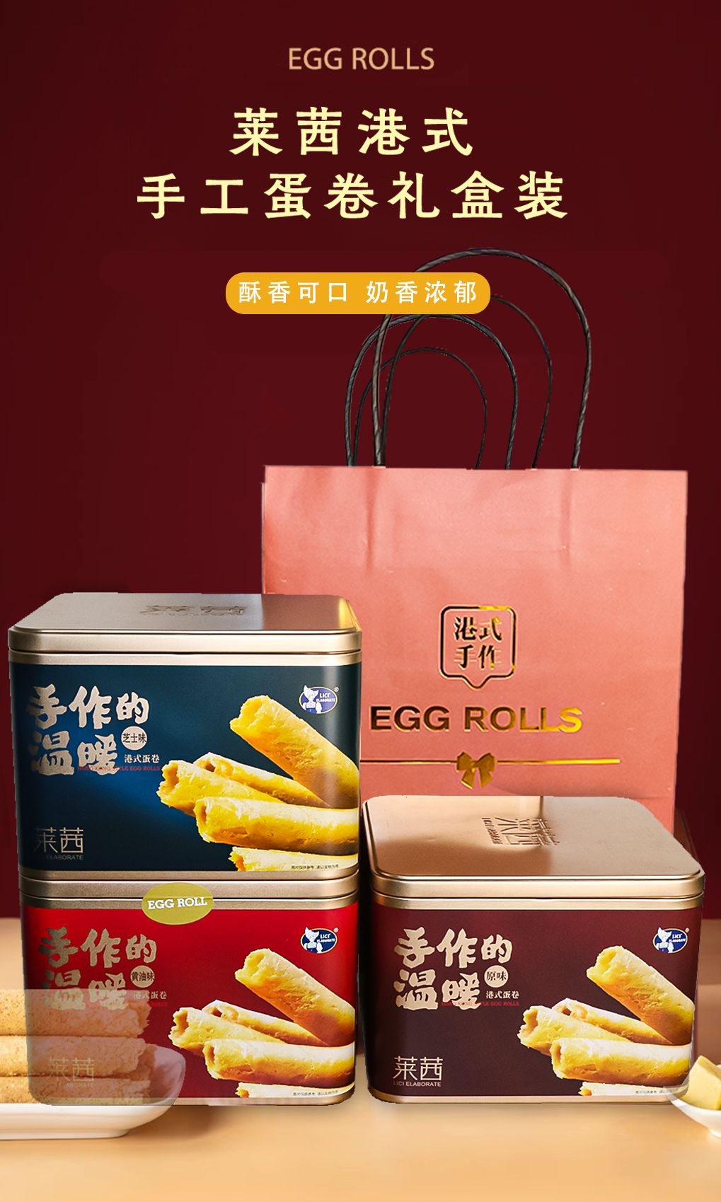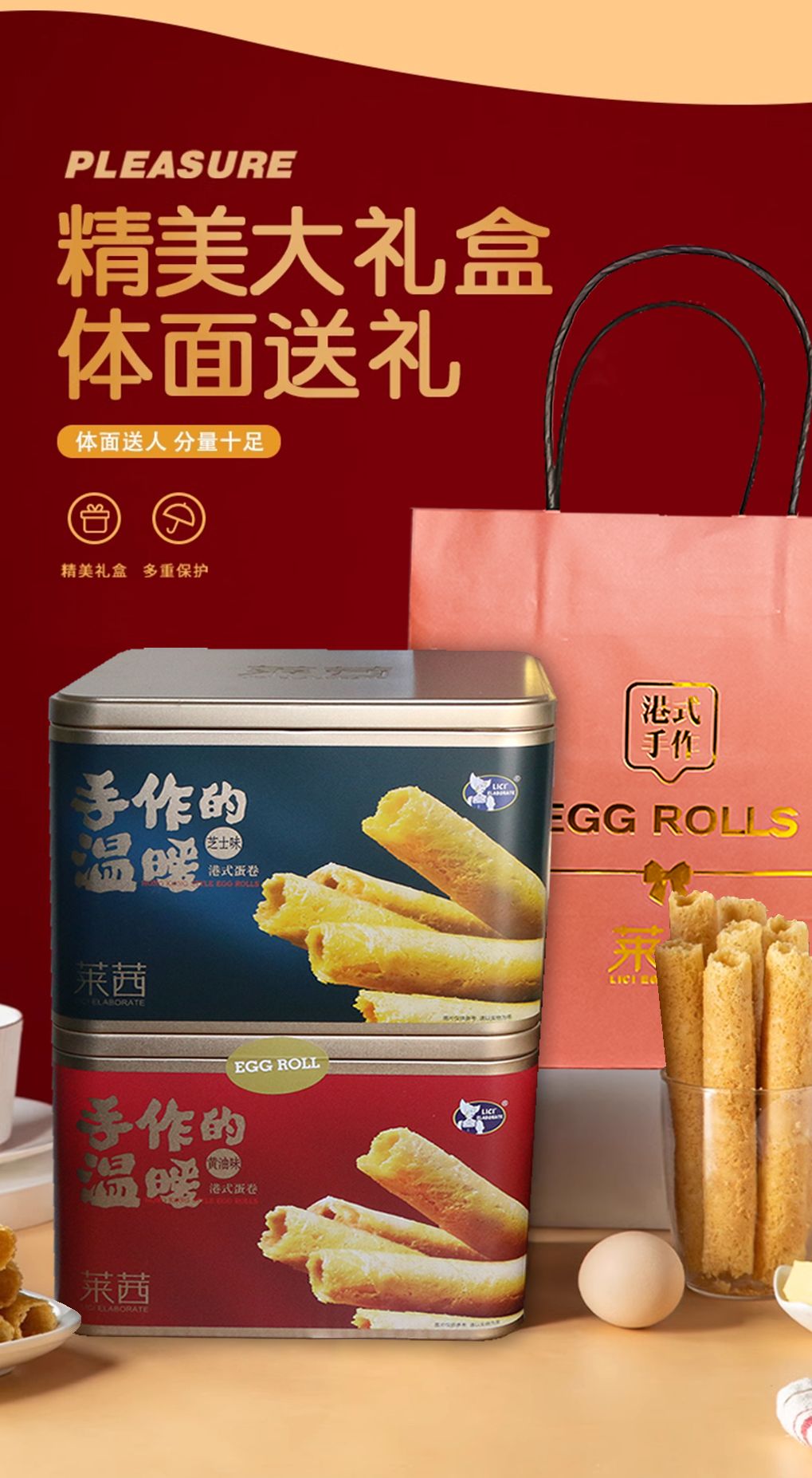 【2盒手工蛋卷,赠礼袋】莱茜手作温暖手工蛋卷原味 芝士味 黄油味600g约40根