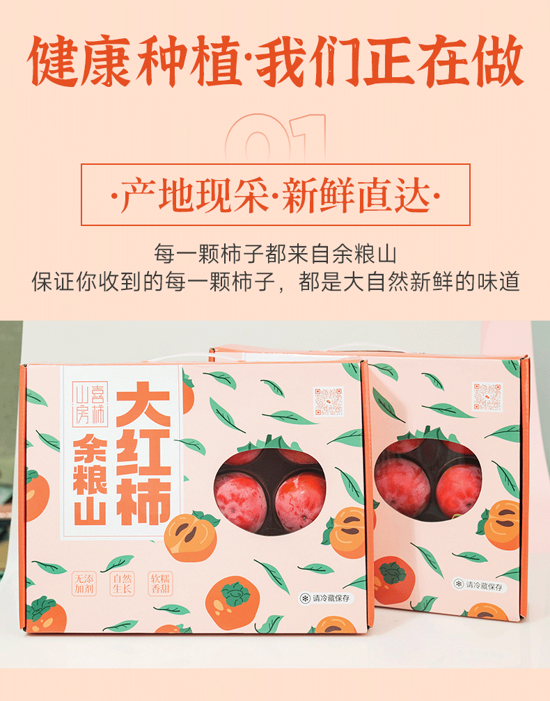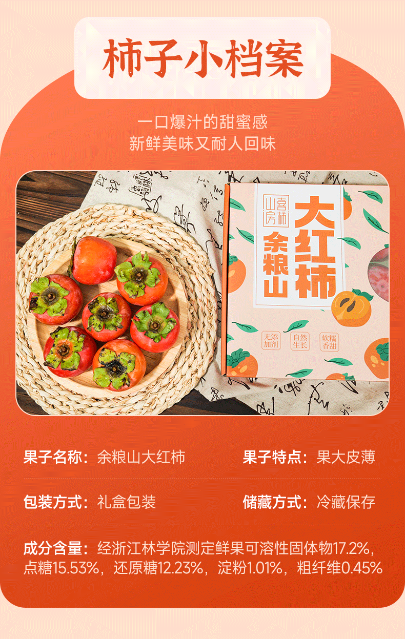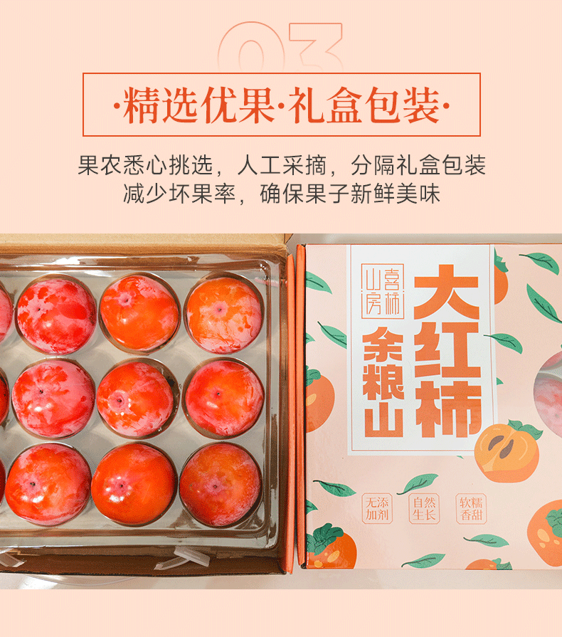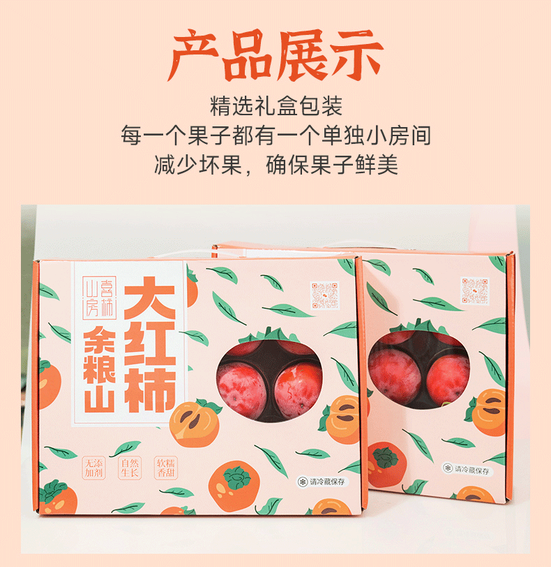 【公益助农 不赚农民一分钱!】喜柿山房 余粮山大红柿子 现摘现发 应季大果 12枚精致礼盒装 单果约130~150g左右 3.5斤/盒