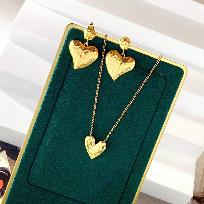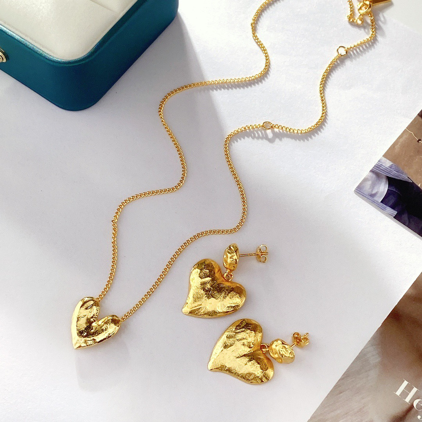 417-10:小众品 Mer复古摩登 金色桃心 耳环项链套装。这个牌子国内很少见,不过ins十分火热,红透半边天的感觉。