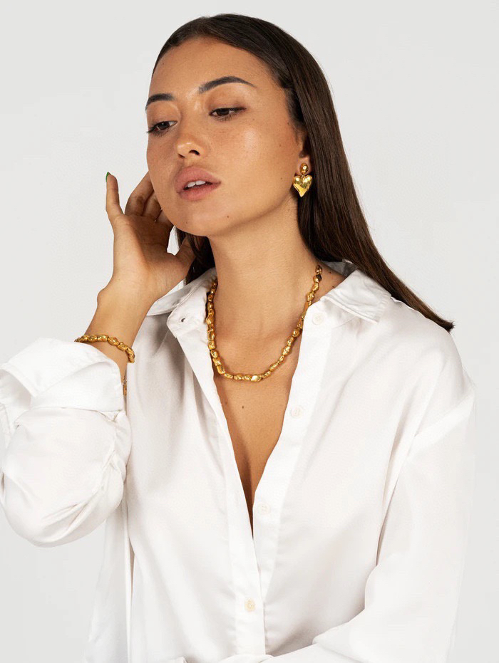 小众,轻奢,风格鲜明。区别于以往的桃心,一改锃亮规整的造型,风格上更加随心所欲,也不似完整的平面,也没有完全的对称,像是未完工的产品,但是金色,颜色特别纯粹。妥妥儿的摩洛哥风情。