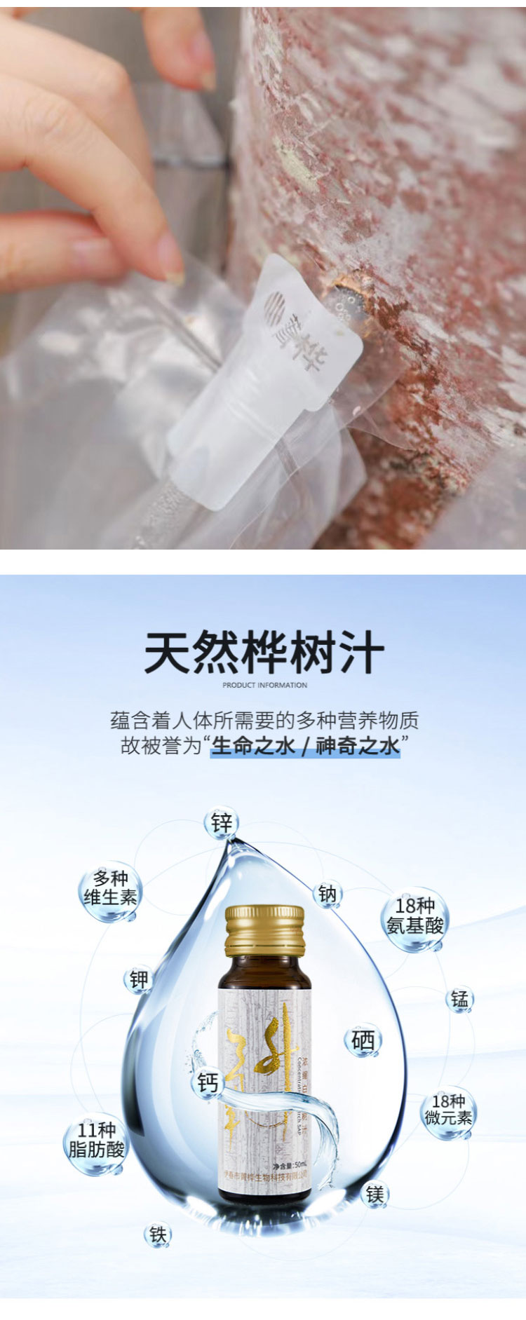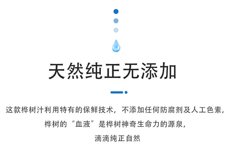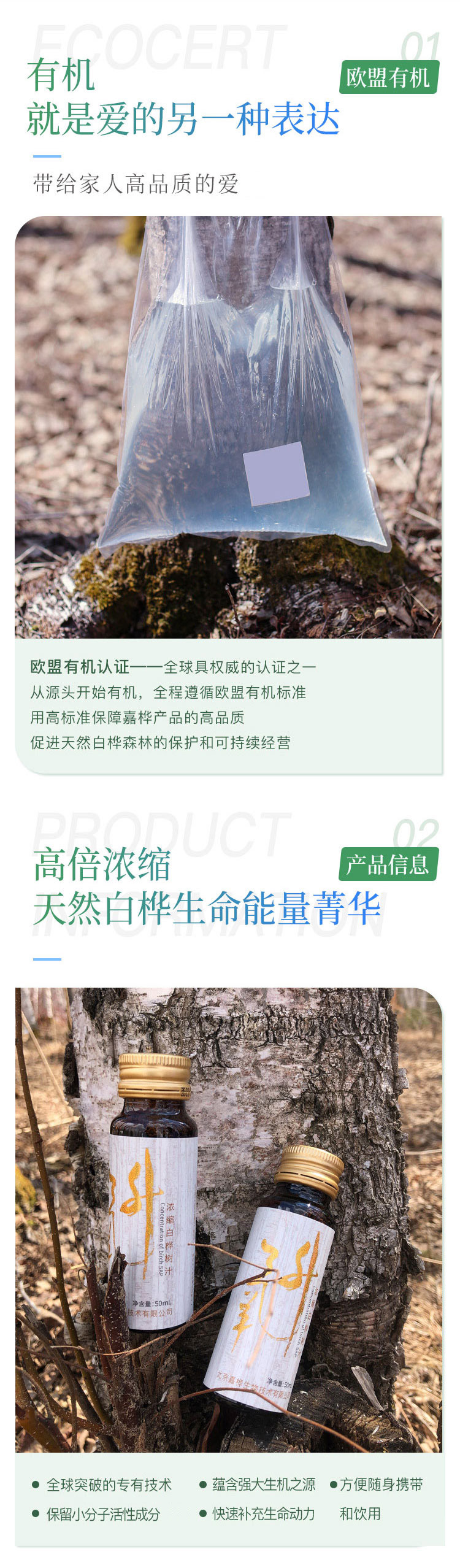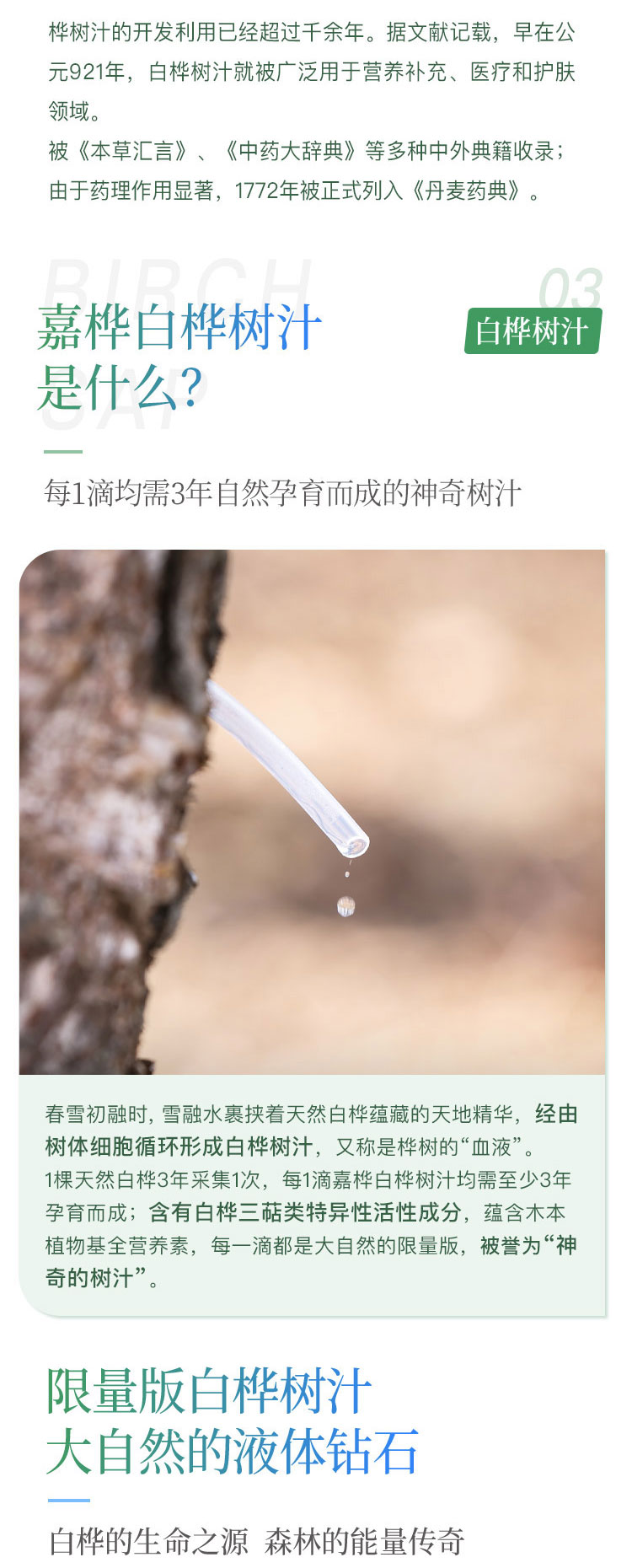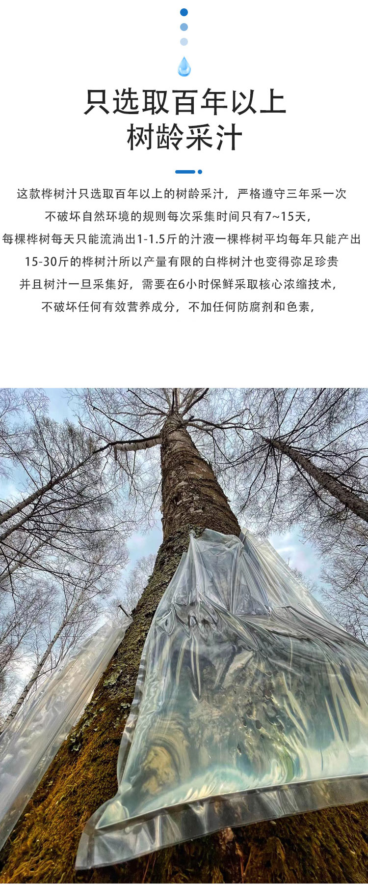 2. 取汁天然,品味自然,取自北半球北纬47。 以北的原始森林中的白桦树干里,