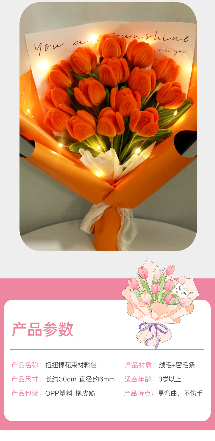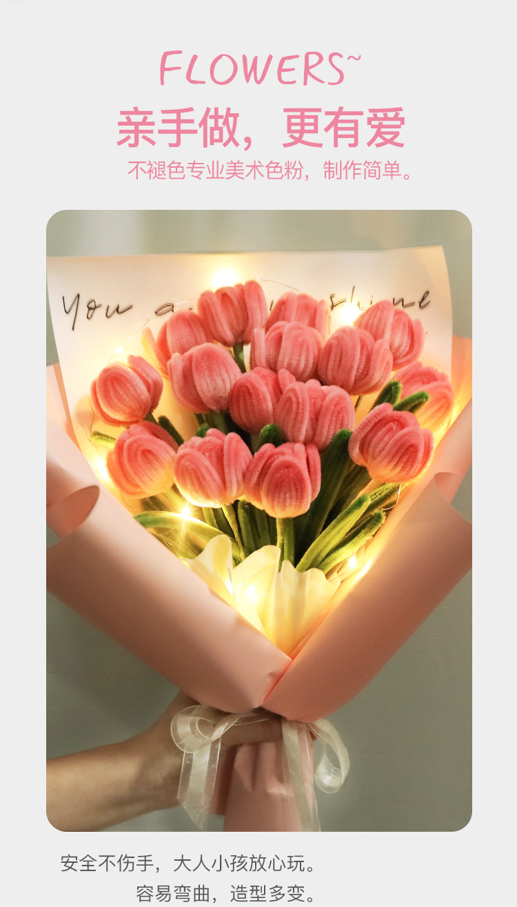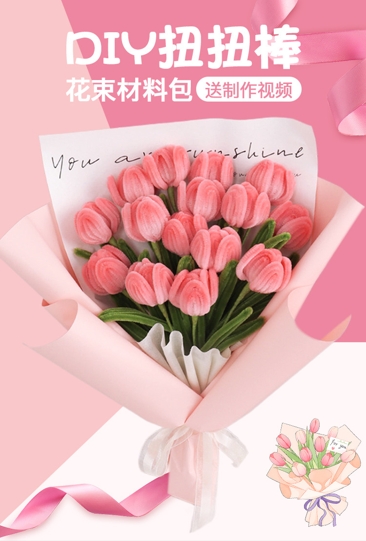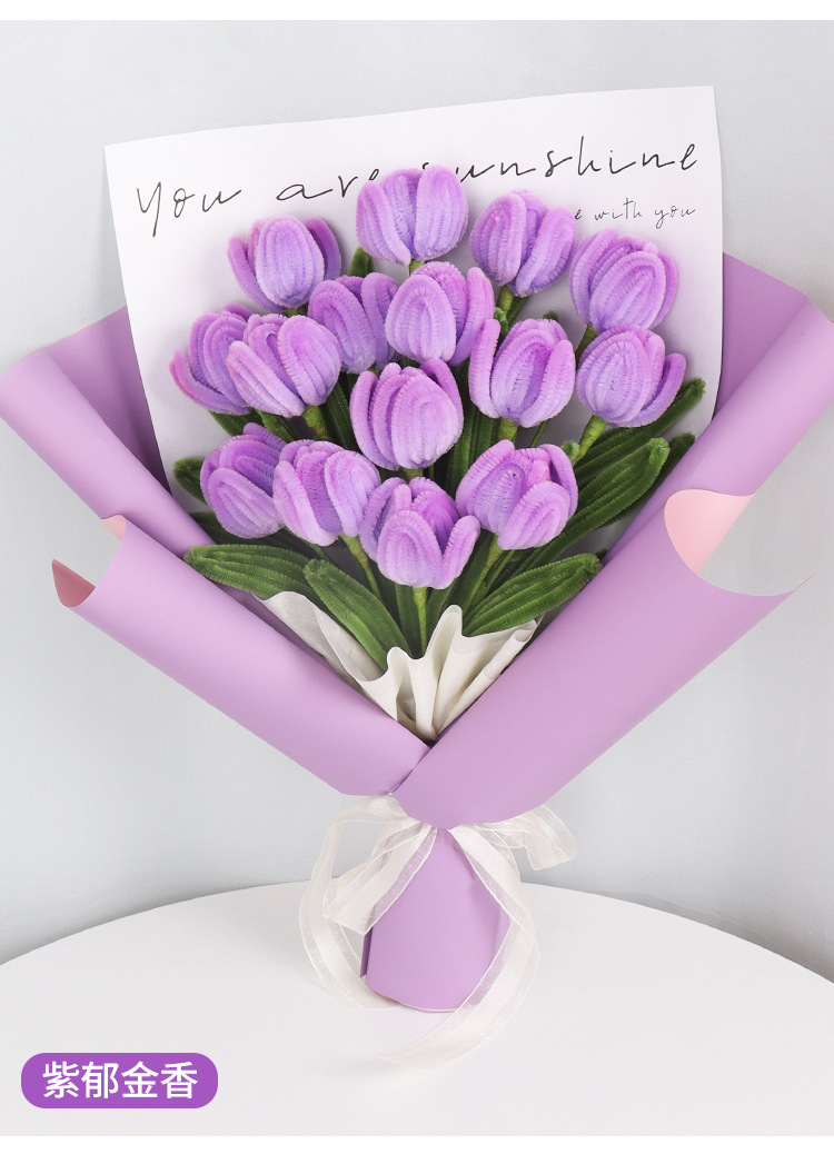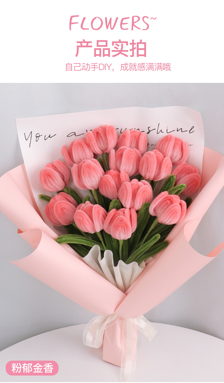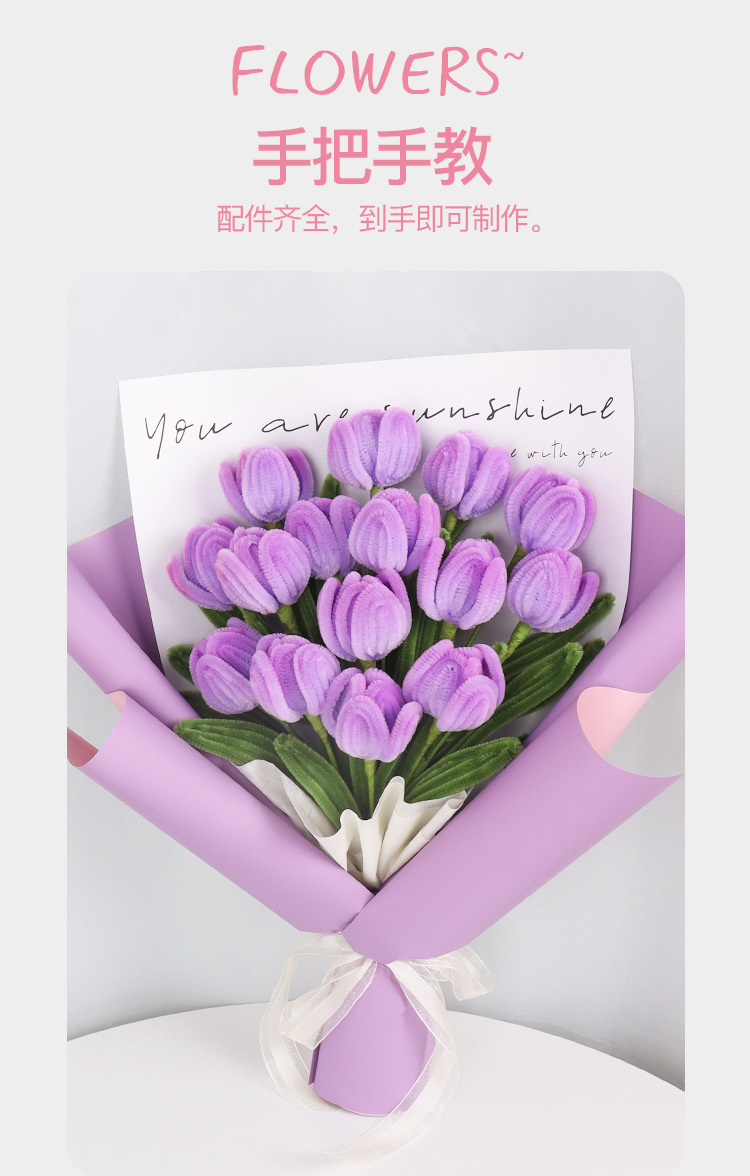 【小红书同款马克龙蓝郁金香花束材料包】扭扭棒diy生日手工礼物 不褪色专业美术色粉 制作简单容易不伤手
