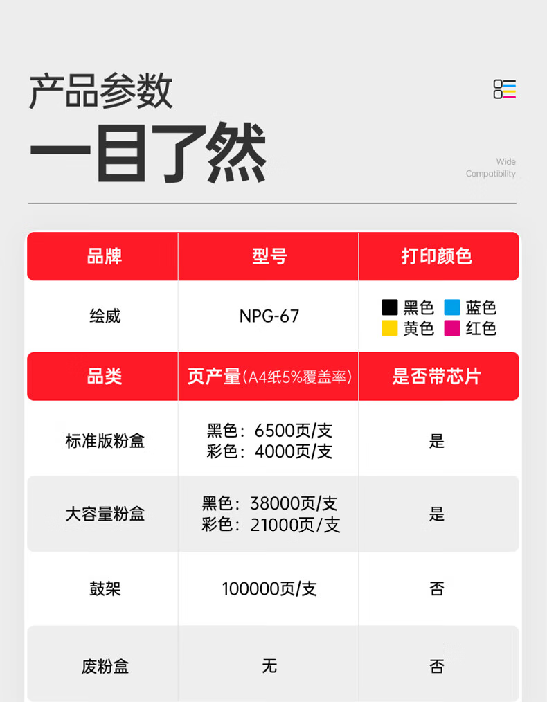 绘威适用佳能NPG-67粉盒 C3020墨粉 C3222l C3226 NPG67粉盒 C3120L硒鼓 C3125墨盒 C3320 C3130L 3520墨粉盒