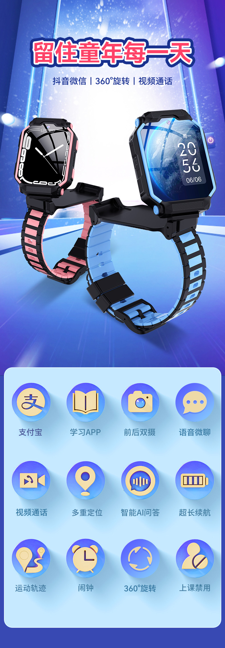 【自营】LEFIT勒菲特 Y61M 5G全网通前后双摄儿童通话手表多重定位高清通话