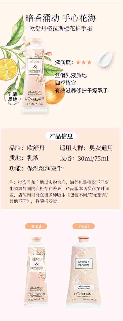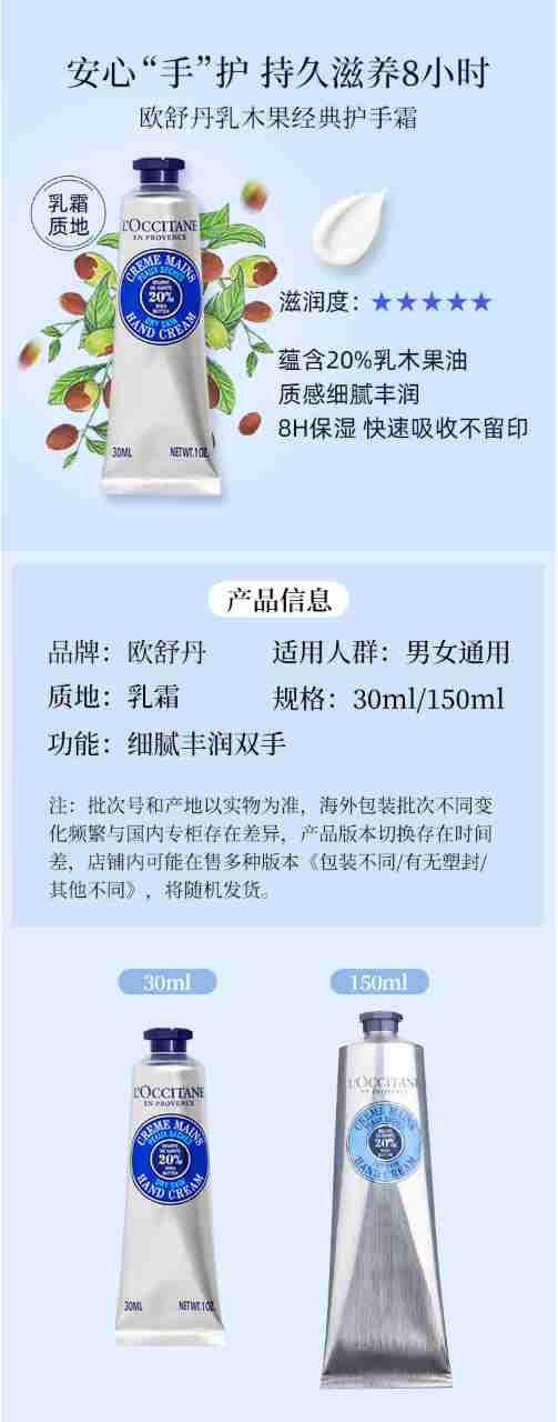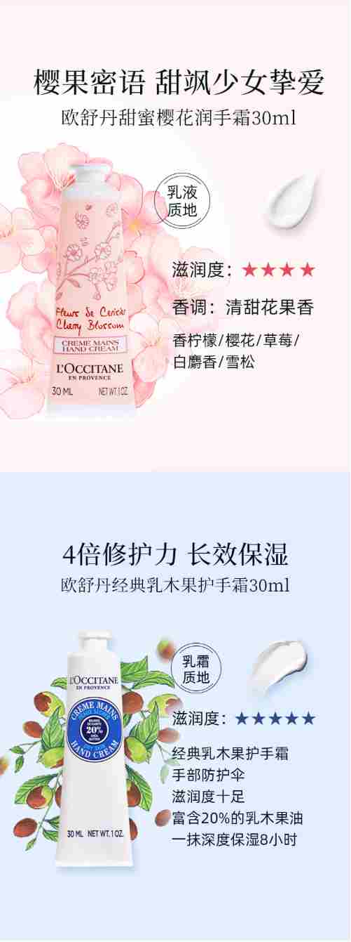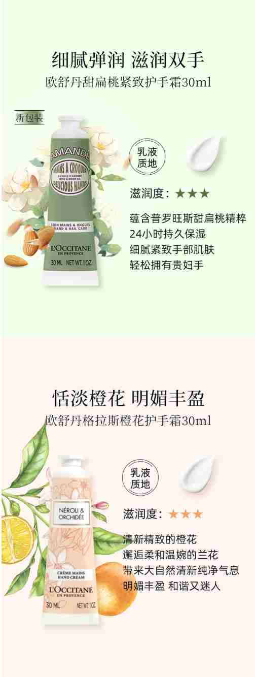 欧舒丹(L'OCCITANE)护手霜滋润保湿补水润肤护手霜男女通用清爽不油腻婚礼伴手礼秋冬 欧舒丹护手霜3只限定版30ml*3 礼盒装