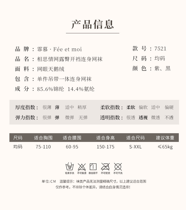 【情趣内衣】霏慕 相思情网露臀开裆连身袜7521情趣内衣性感纯欲黑丝诱惑
