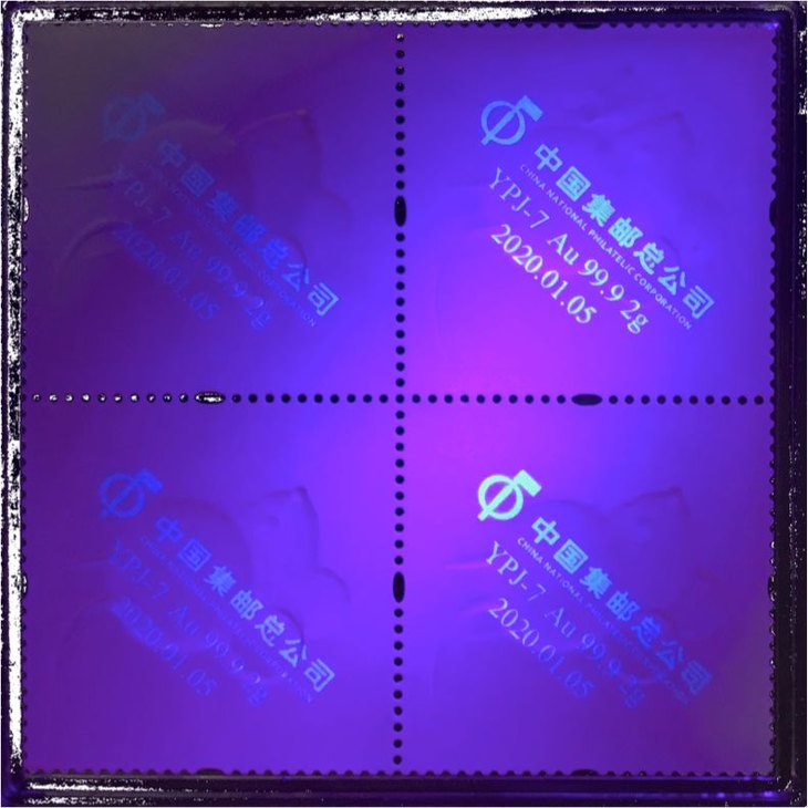 《庚子年》邮票金将中国邮政独有的邮票纸与贵金属完美结合,且在邮票纸上附有荧光防伪图案,防伪力度极高;同时配有多重防伪技术且含有收藏号码的防伪证券纸制作的收藏证书,进一步增强了产品的防伪性。