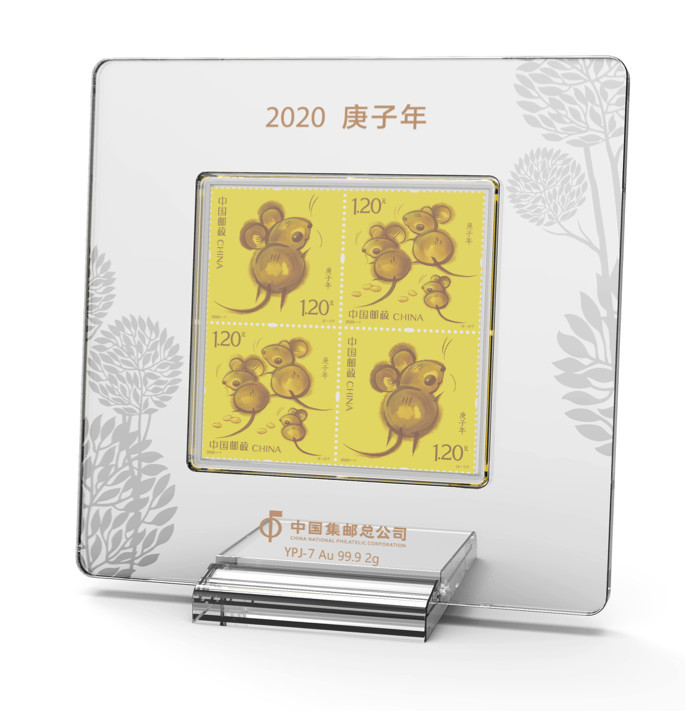 邮票金是按照邮票形象制造的贵金属收藏品,每套邮票金都含有2克999纯金,并附送亚克力台架、鼠年邮票小版一套,带官方收藏证书!