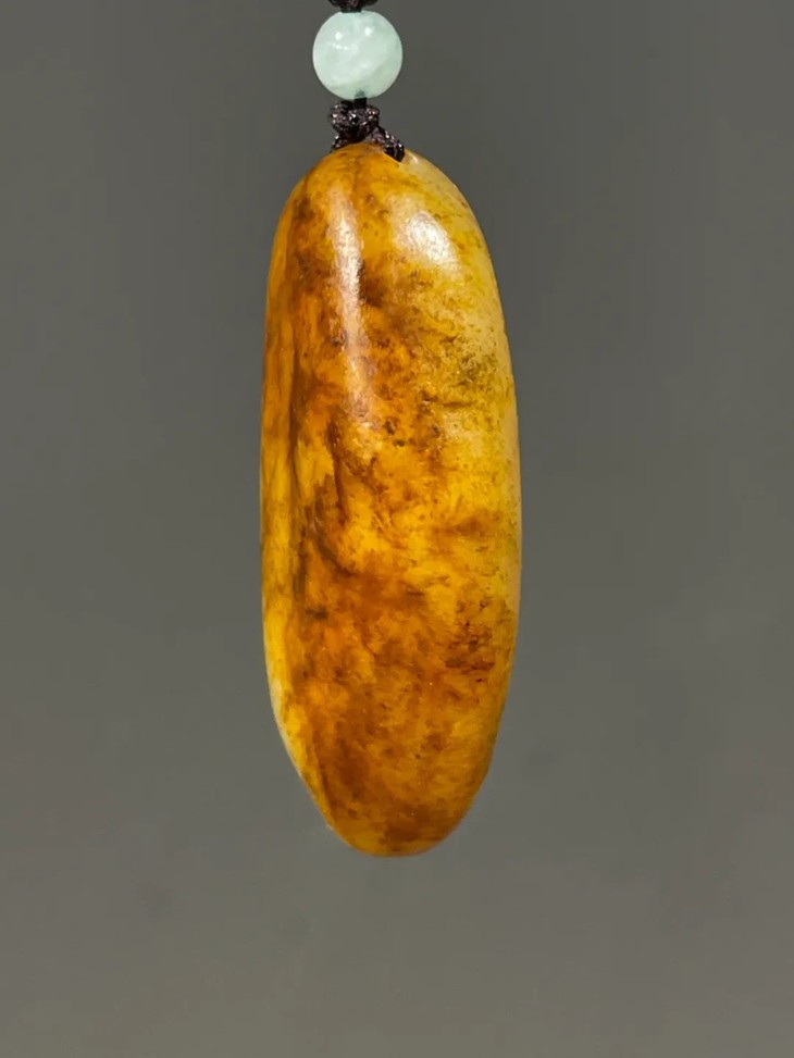 这是一粒新疆和田褐红皮沁籽料白玉把玩原石雕詩文而成的吊坠,长鹅卵石形原石籽儿,是经历水中翻腾数十万年所形成之褐红皮沁白玉扁鹅卵形原石,整块籽儿几乎全面浅层表面褐红沁,小局部显露出半通透白玉,全籽儿质地坚硬、温润细腻。一面雕詩文:“東郊春草色,驅馬去悠悠。況復鄉山外,猿啼湘水流”,上方钻穿线孔,搭配绳结,入手即可佩戴。