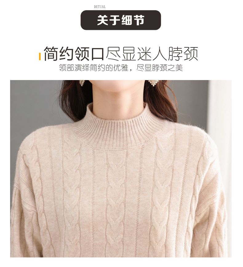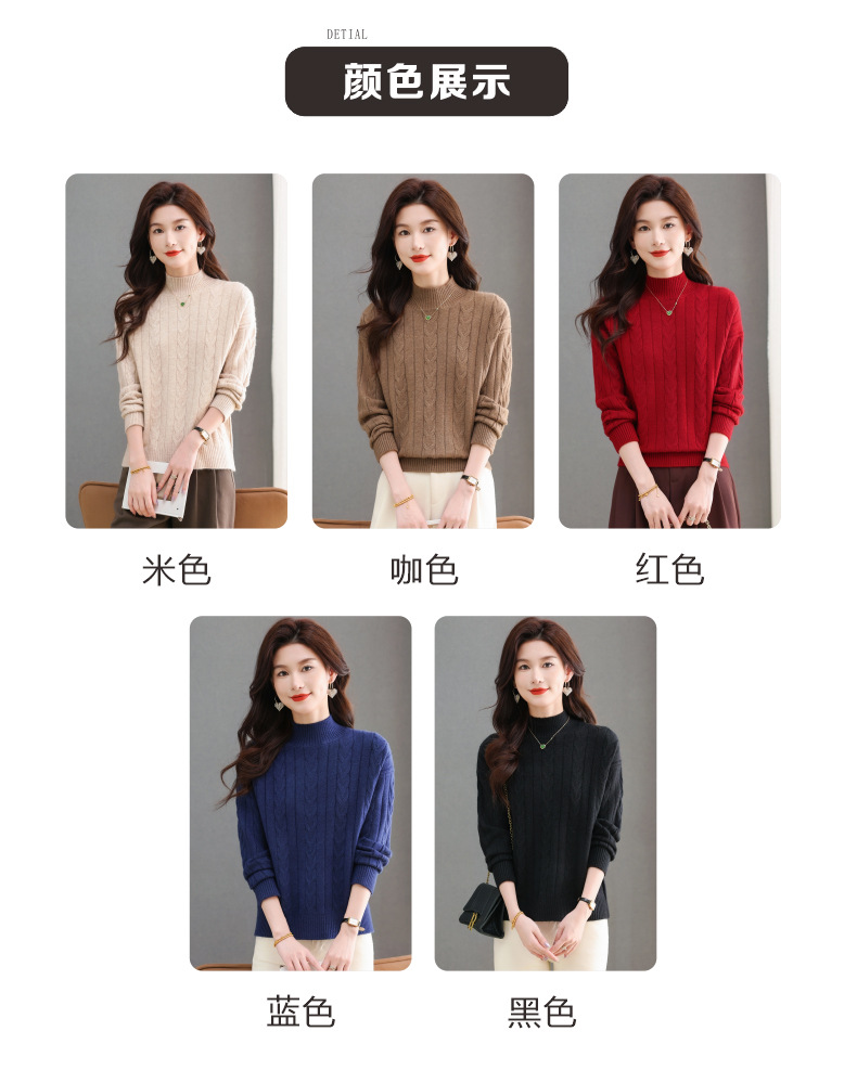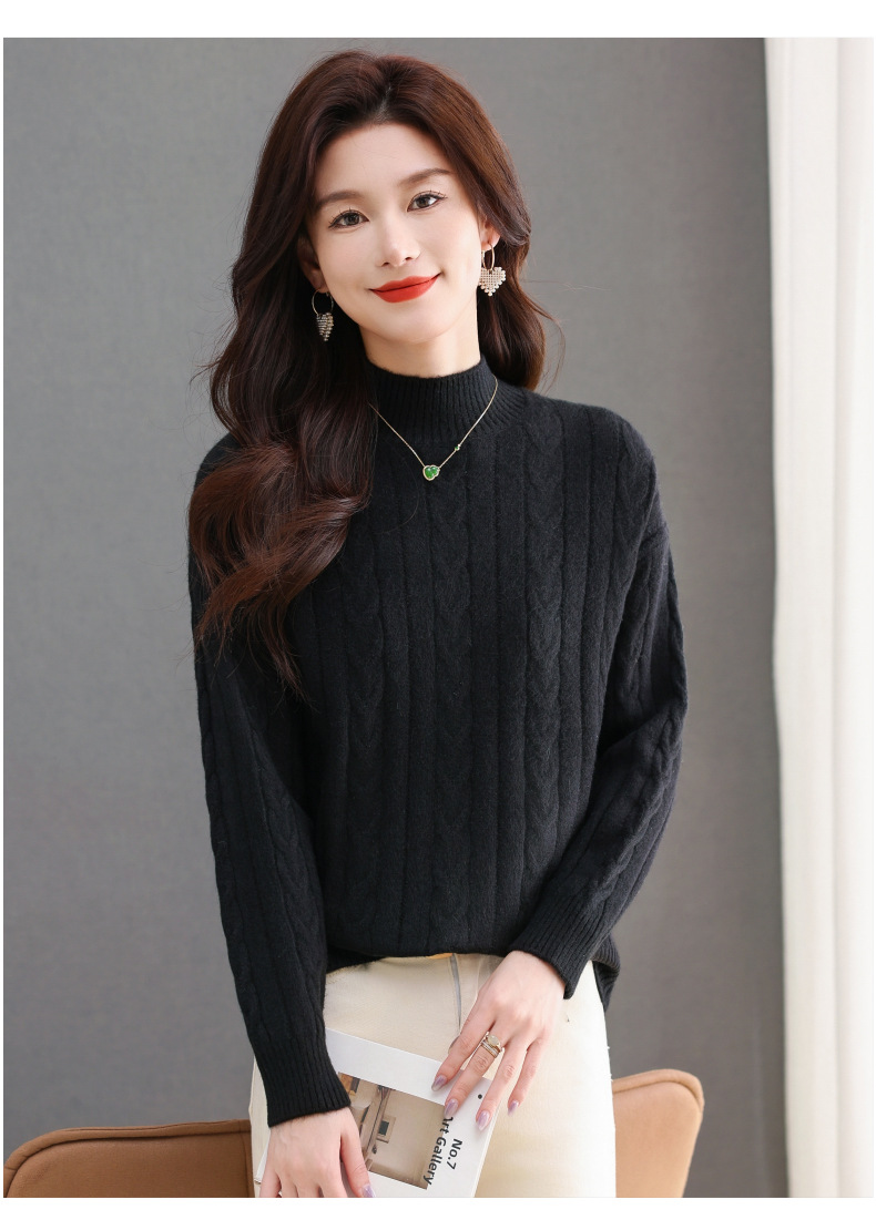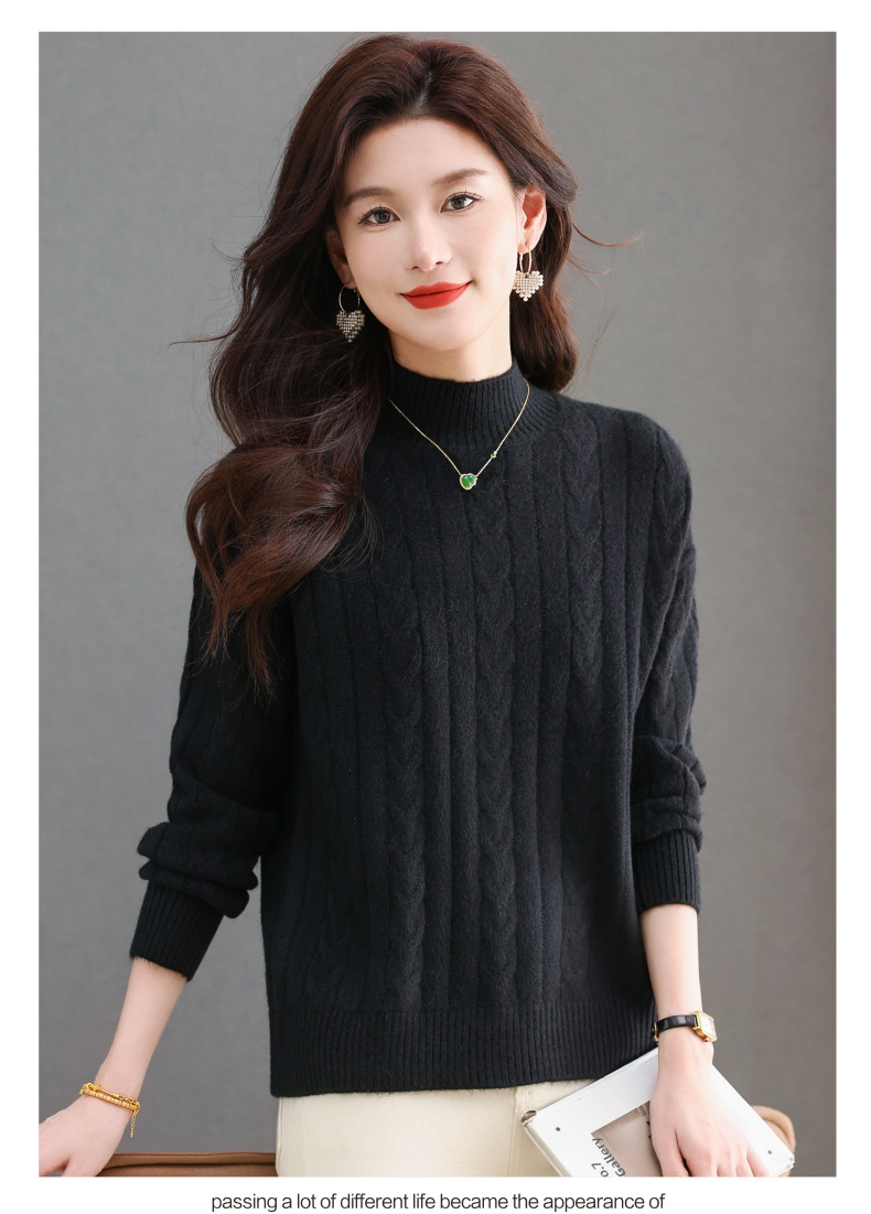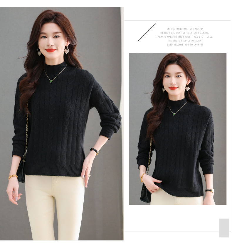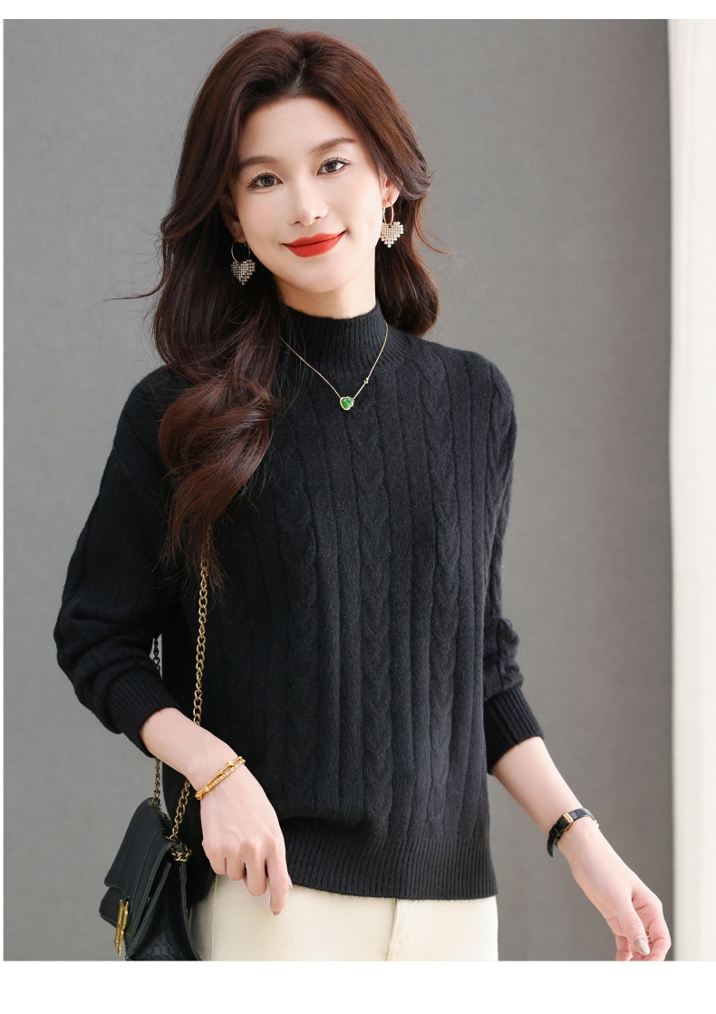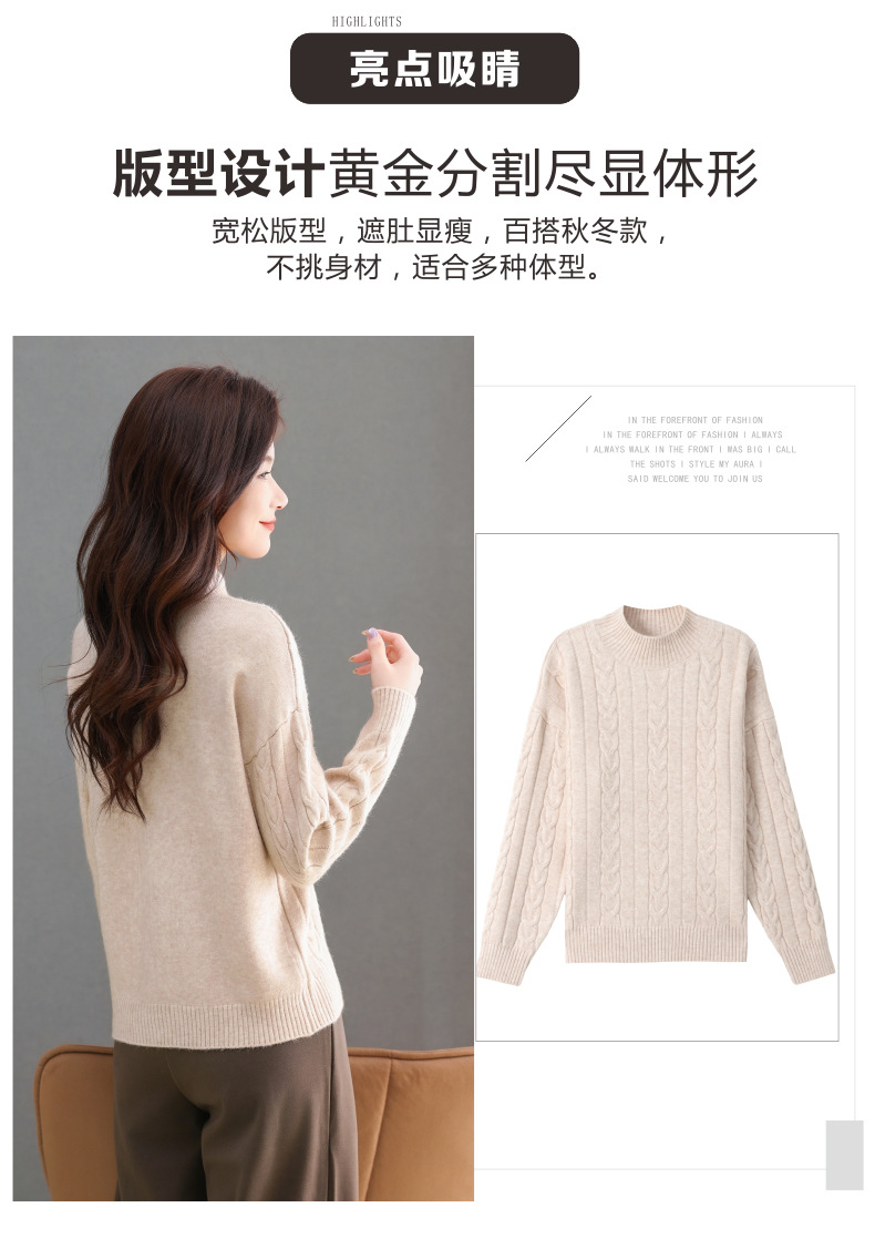 CC-tbrk-X1809时尚绞花半高领内搭短款针织衫女秋冬2024新款宽松厚款打底衫毛衣
