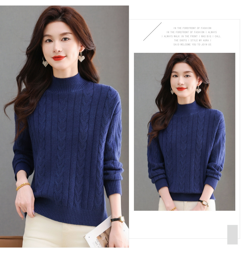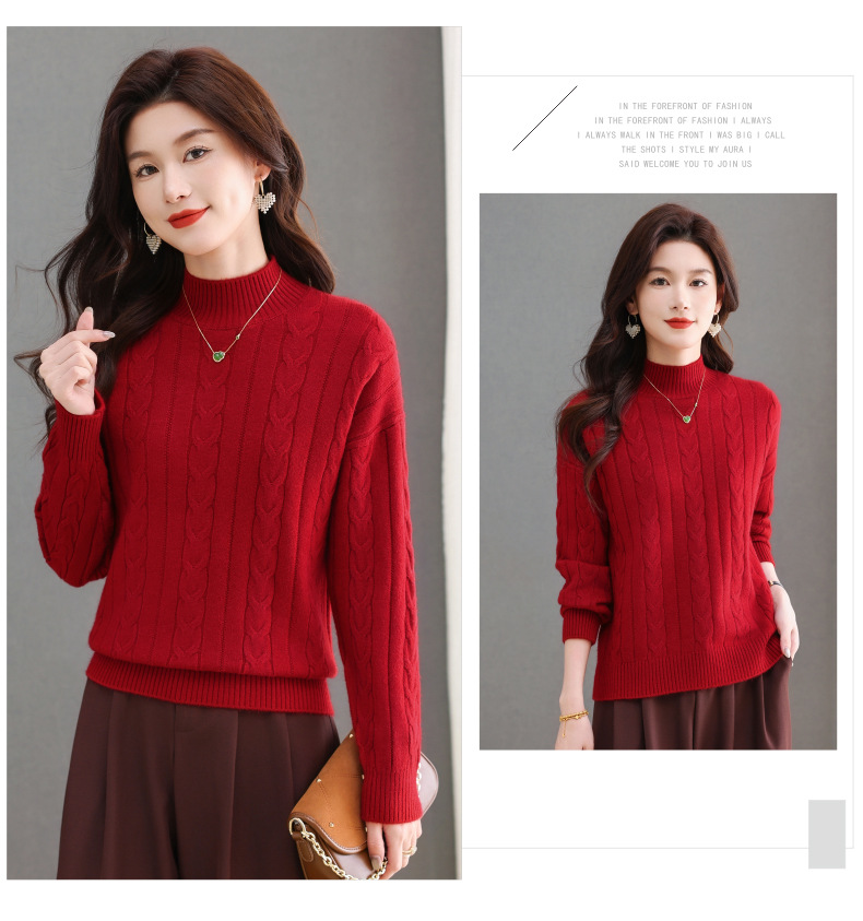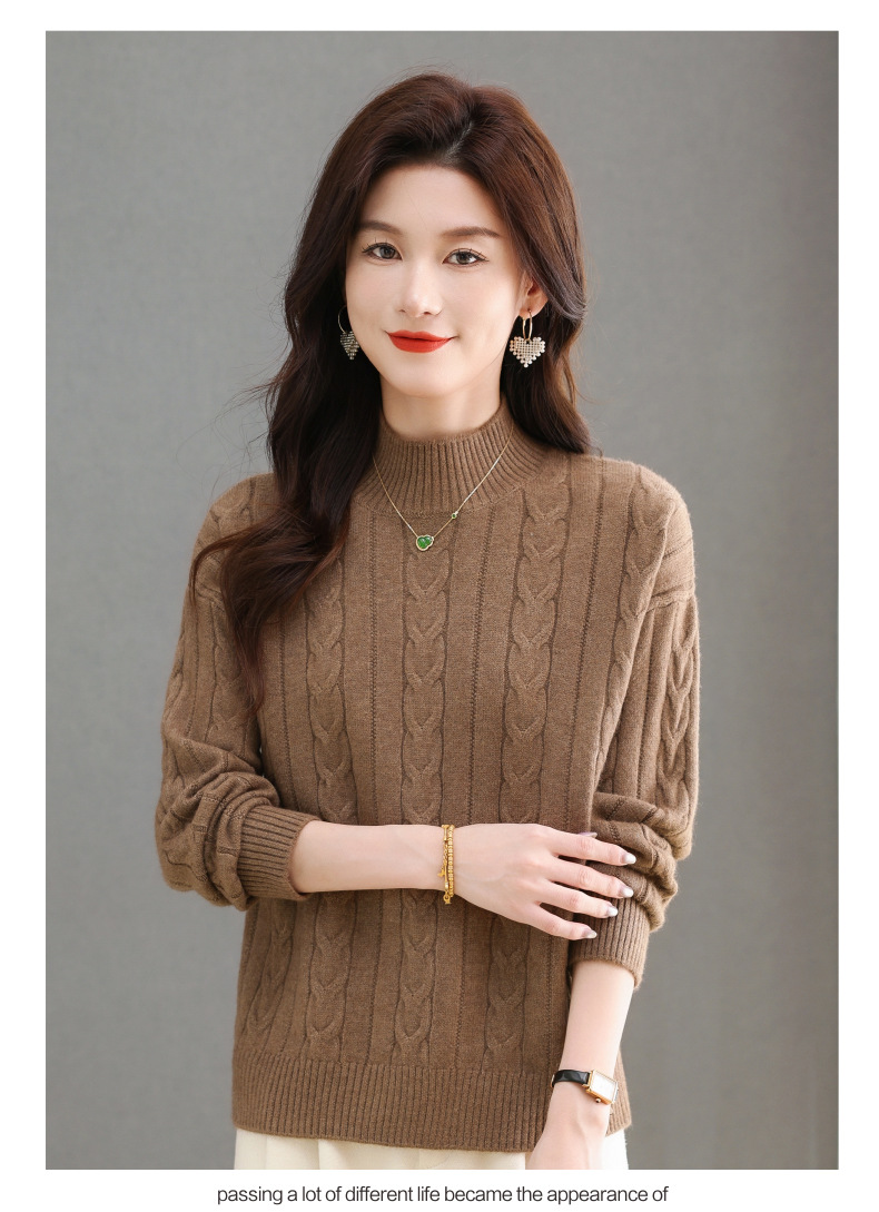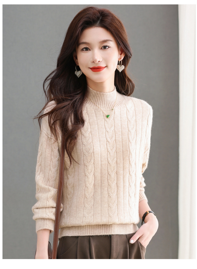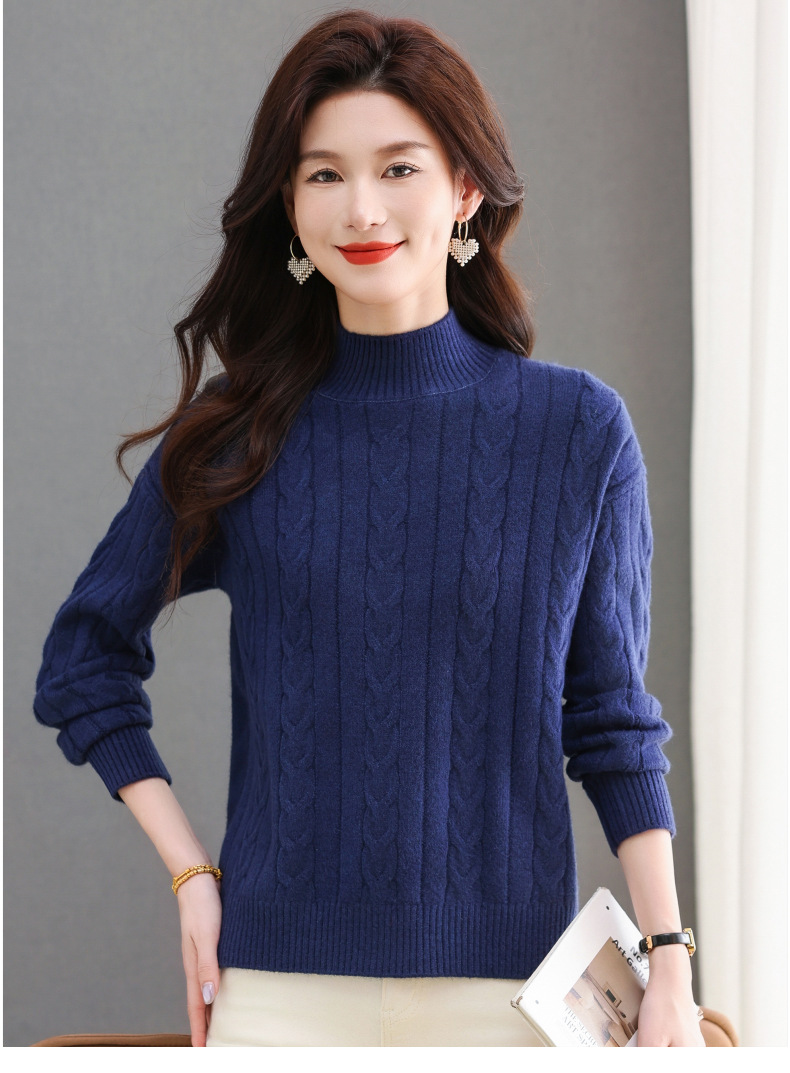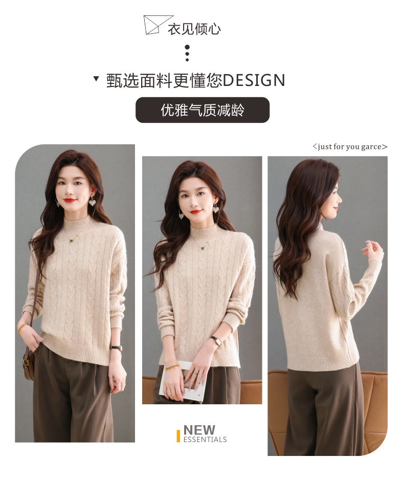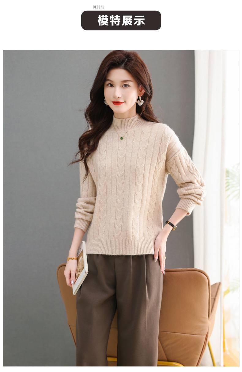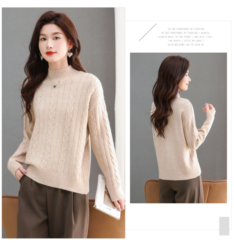 CC-tbrk-X1809时尚绞花半高领内搭短款针织衫女秋冬2024新款宽松厚款打底衫毛衣