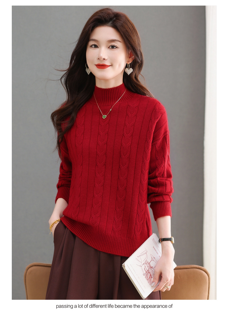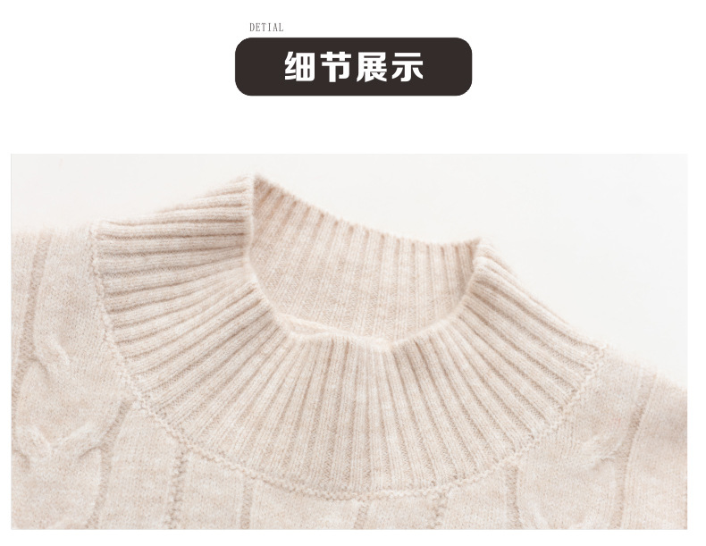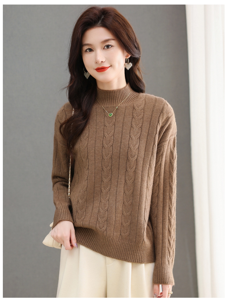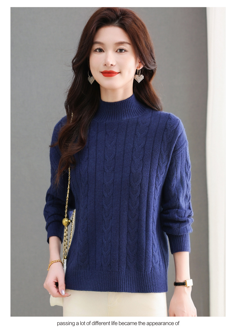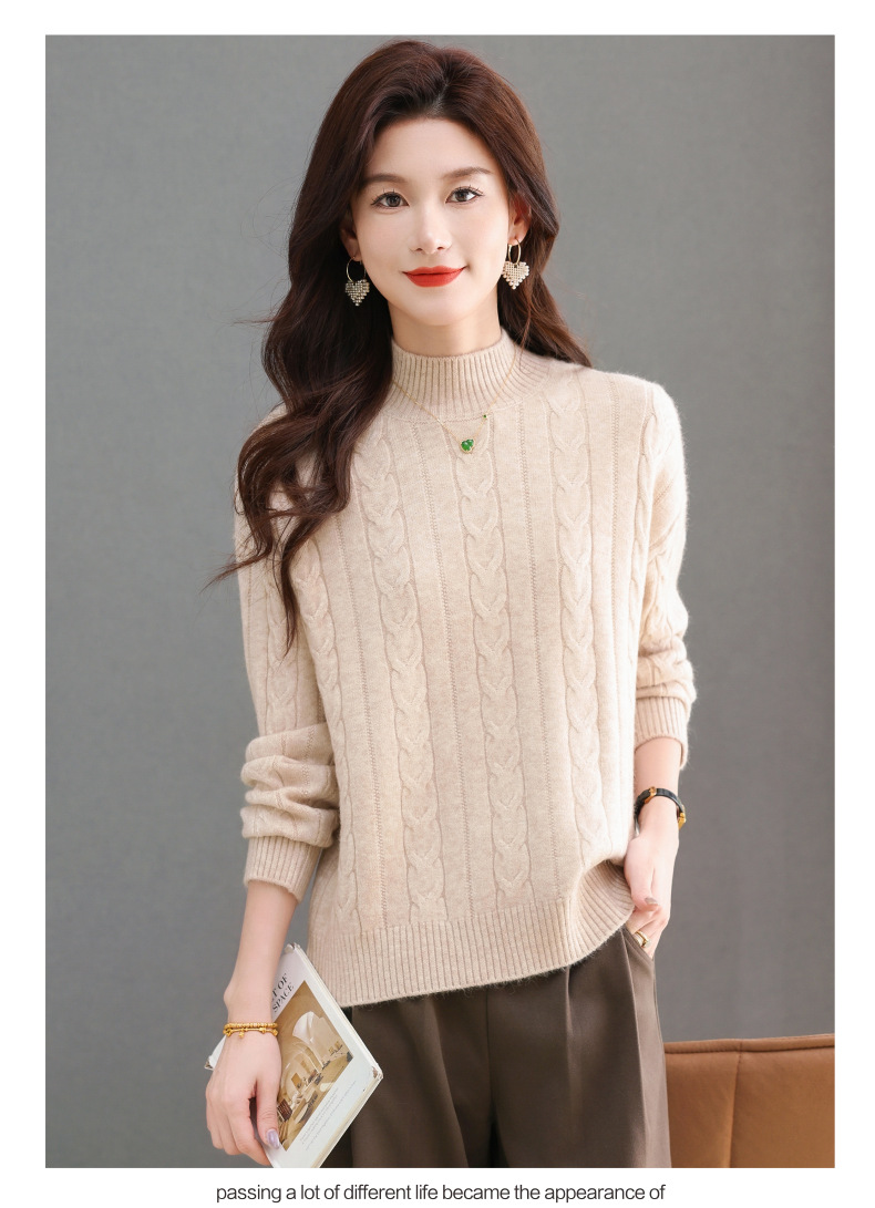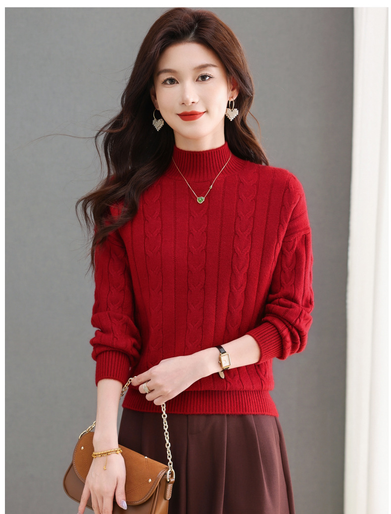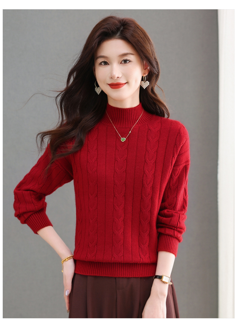CC-tbrk-X1809时尚绞花半高领内搭短款针织衫女秋冬2024新款宽松厚款打底衫毛衣