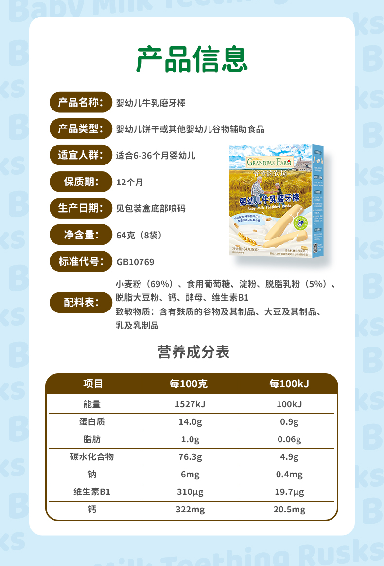【阶梯满减】 Grandpa's Farm爷爷的农场婴幼儿牛乳磨牙棒64g