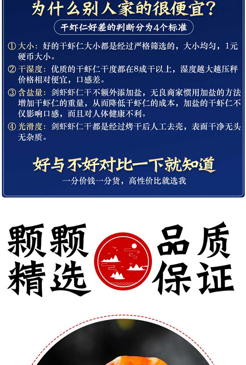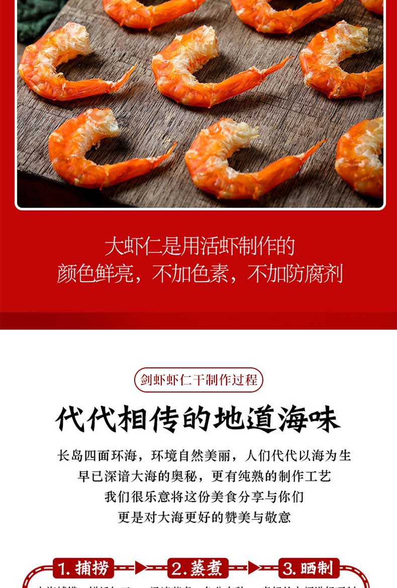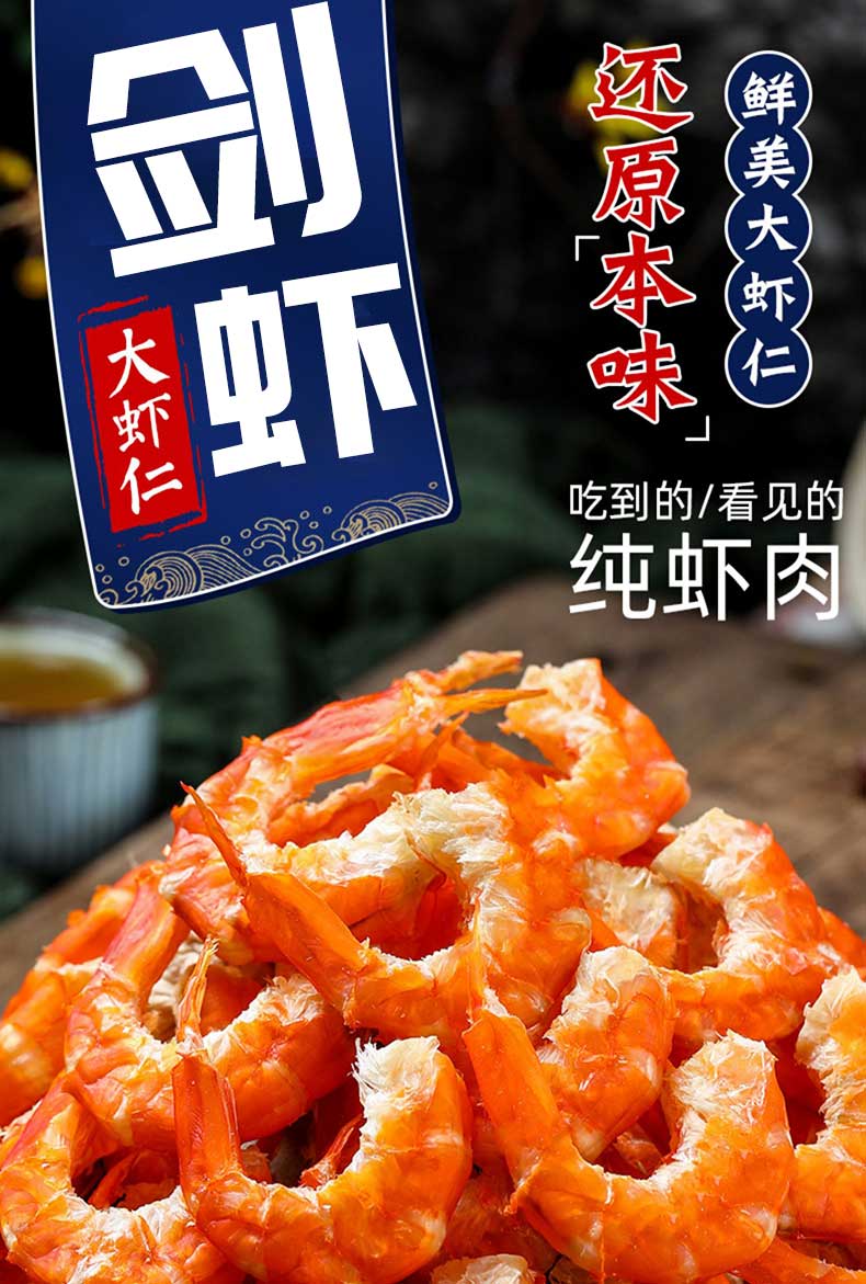 港岛姑娘 剑虾虾仁干自然无盐晒干海虾干货手工晒制原汁原味0.5斤/包