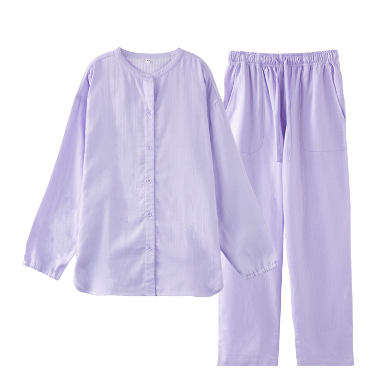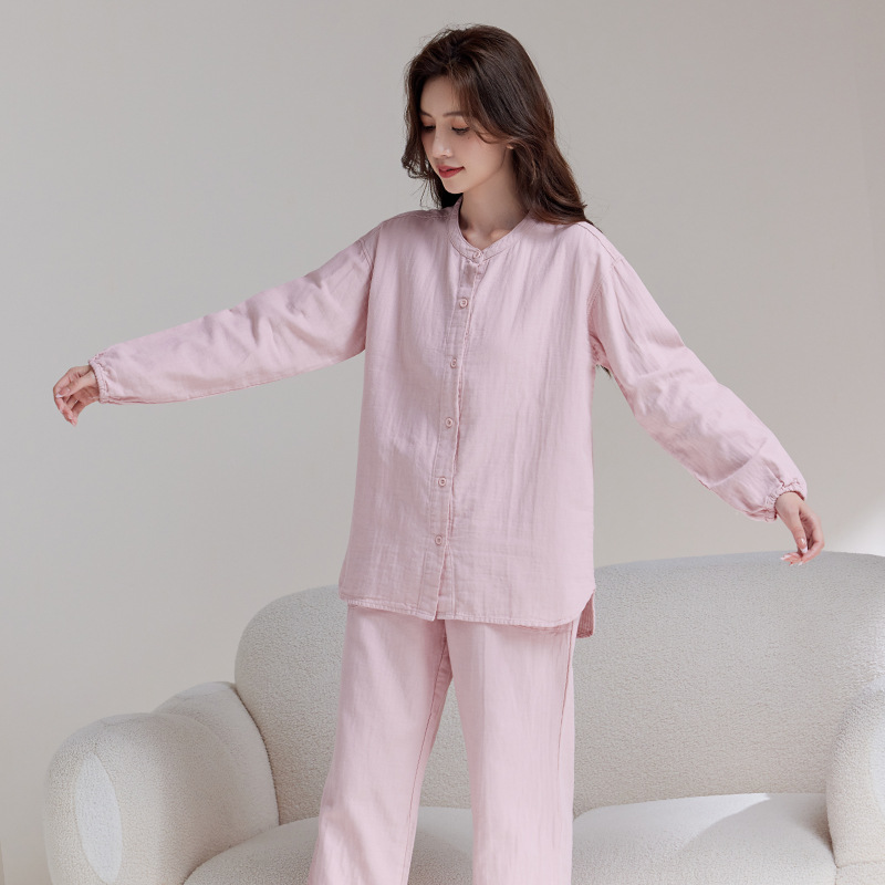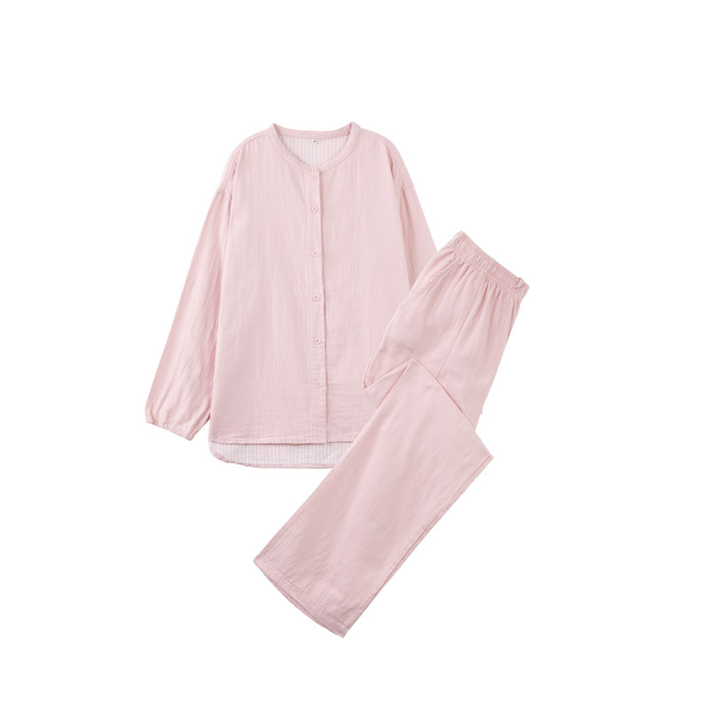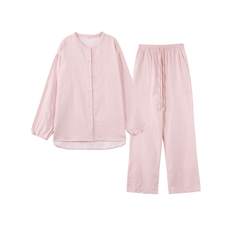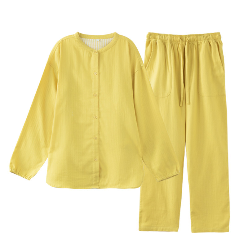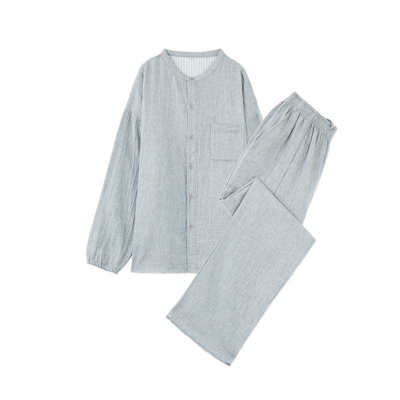 【国潮纯色双层纱家居服】国潮纯棉家居服双层纱布情侣睡衣女男士套装睡衣情侣