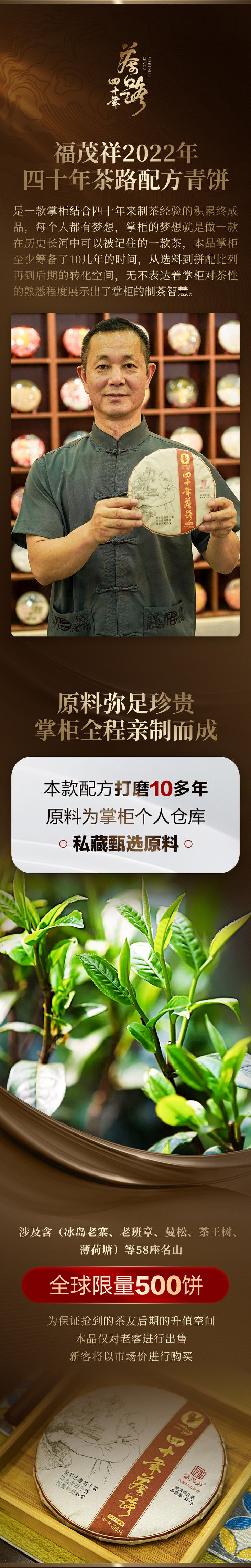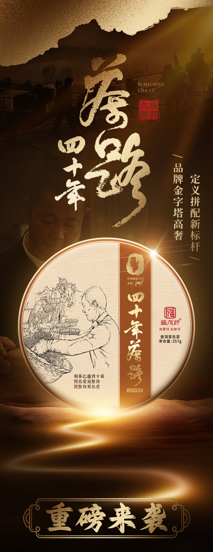 【积分兑换】荣获茶王赛银奖【四十年茶路】【大师系列】张大师40年制茶技艺精髓之作 选自58座名山头原料定义拼配新标杆2023年头春普洱茶357g饼茶