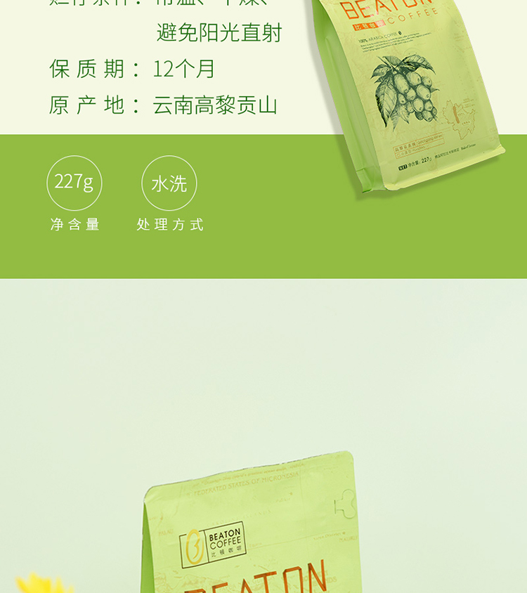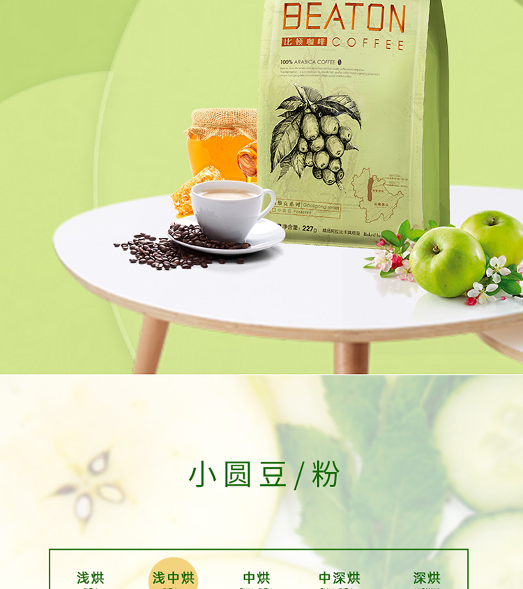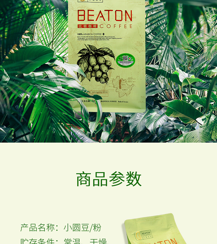 云南小粒咖啡豆,比顿中度烘焙小圆豆咖啡,老品种原味新