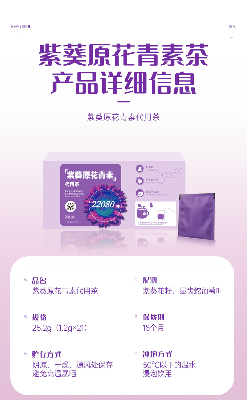 【2盒立减30】紫葵原花青素代用茶 内蒙赤峰紫葵 不含茶碱&咖啡因 低果糖 21袋/盒